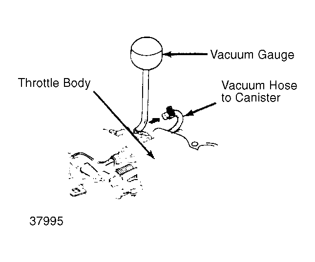 - Start engine. Warm engine to normal operating temperature (when cooling fan comes on). Disconnect vacuum hose (to canister) from top of throttle body. Connect a vacuum gauge to throttle body. See Fig 1 . Engine speed should be set at idle.