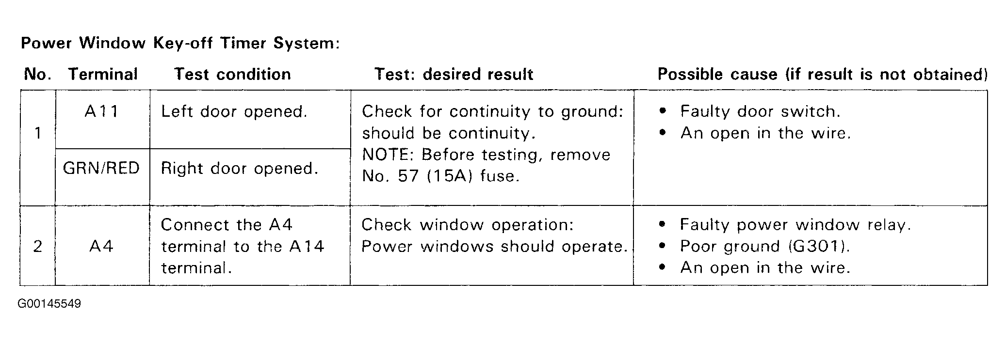 Fig 1: Power Window Key-Off Timer System Input Test