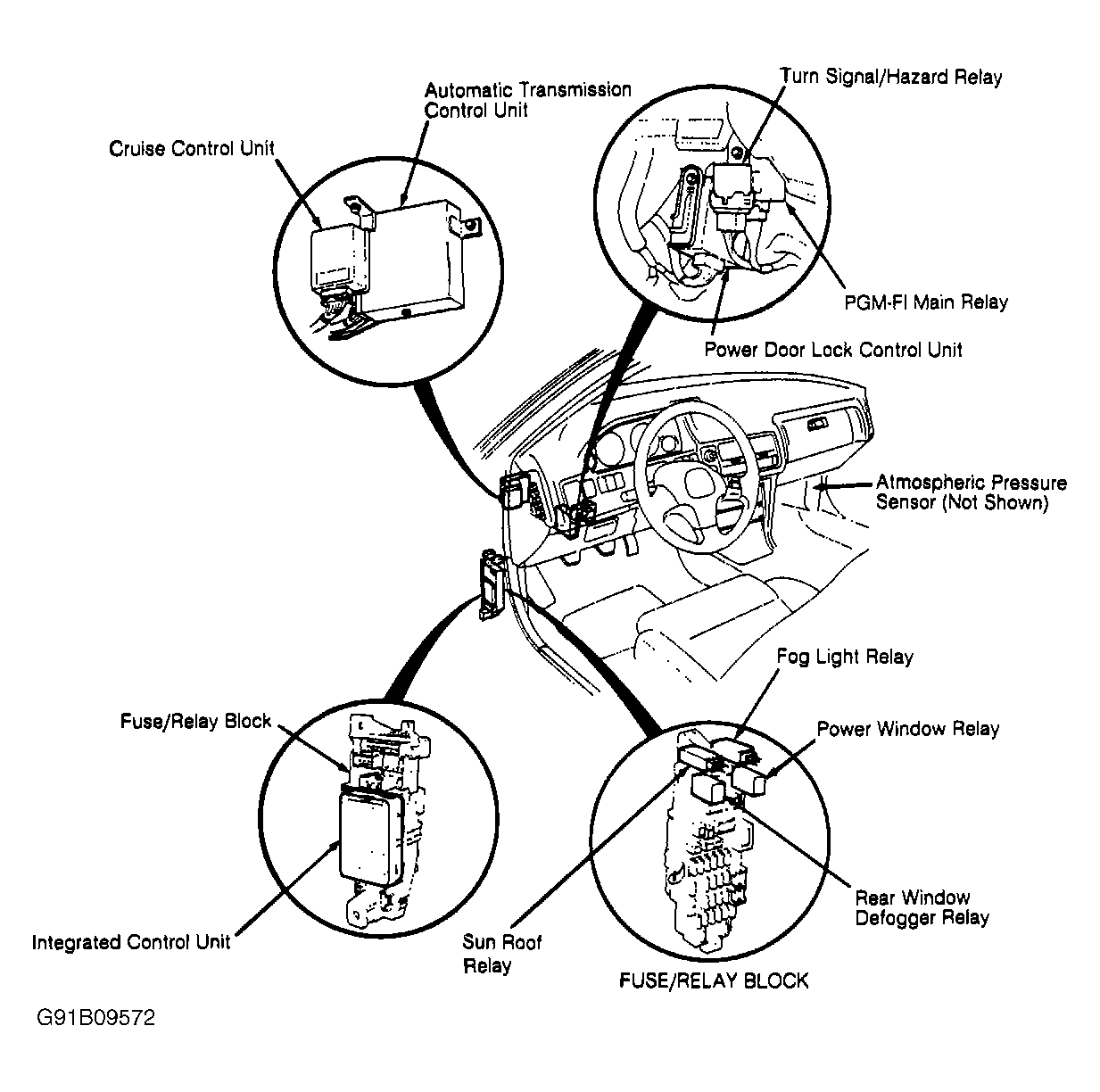 | Power Door Lock Control Unit | Under left side of dash, left of steering column. See Figure . | |