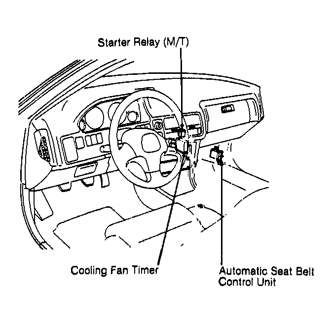 | Automatic Seat Belt Control Unit | Behind right kick panel. See Figure . | |