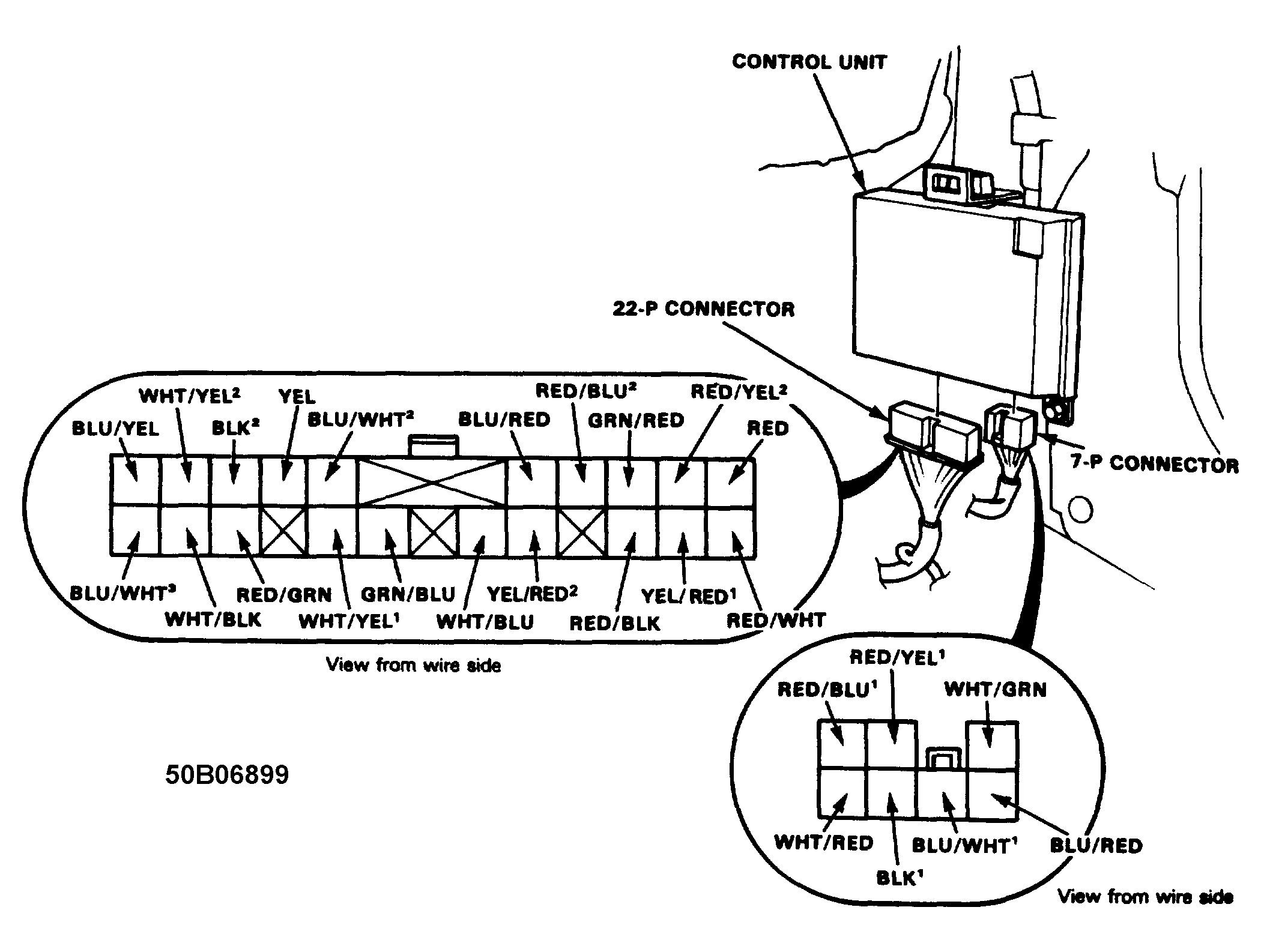 Disconnect the 7-P and 22-P connectors from the Control Unit, located under the right front seat see Fig 1