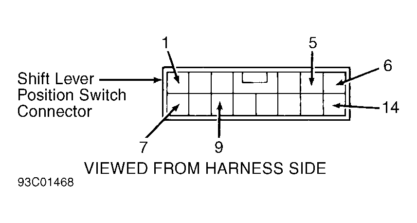 - Continuity should be present in each position. If continuity is present, shift lever position switch is functioning properly. If continuity is not present, check shift lever position switch adjustment. See SHIFT LEVER POSITION SWITCH under ADJUSTMENTS