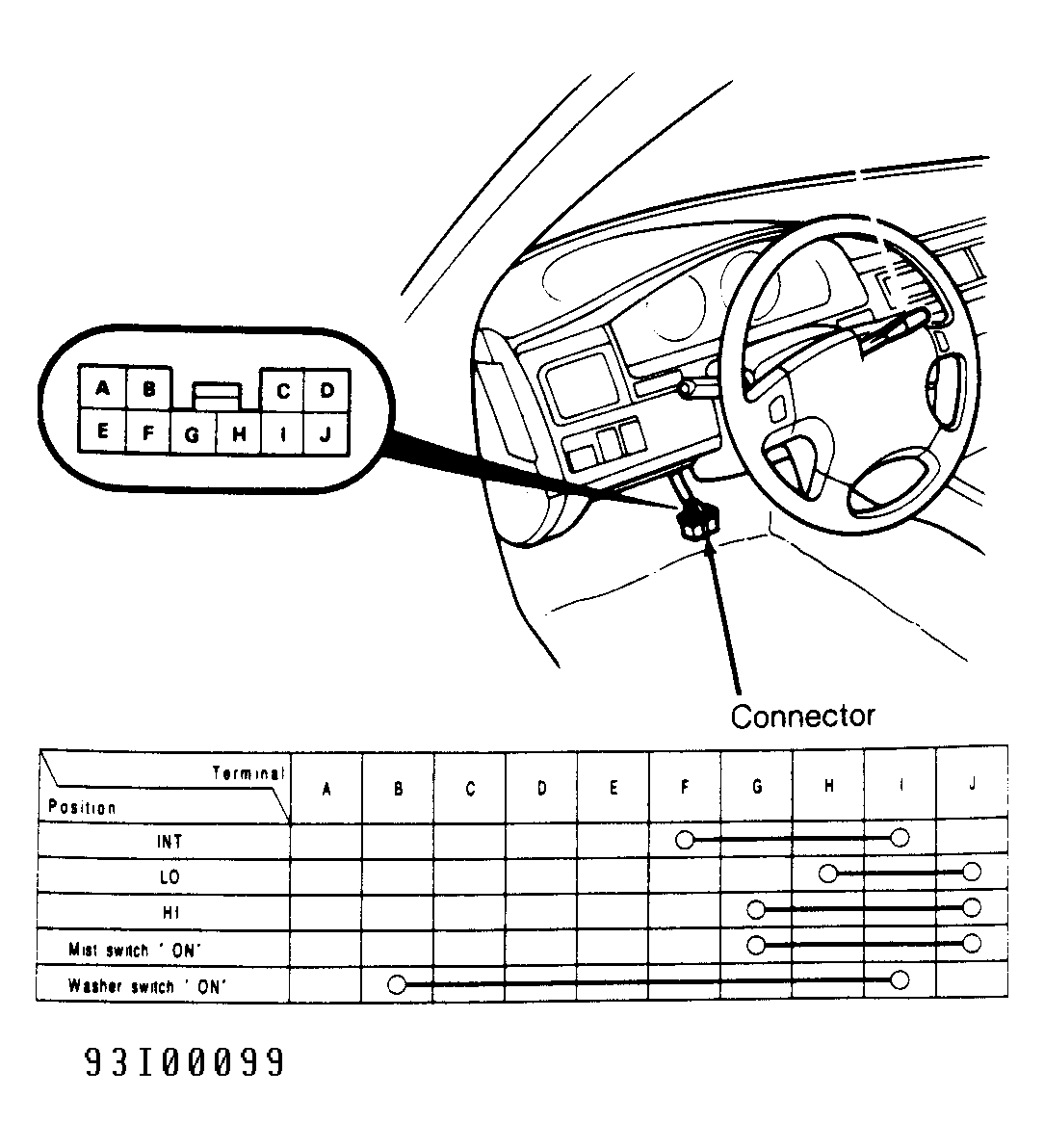Remove lower dashboard panel. Unplug wiper/washer 10-pin connector. Using an ohmmeter, check for continuity between indicated terminals in each switch position. See Fig 1 . If wiper/washer switch does not operate as specified, replace switch.