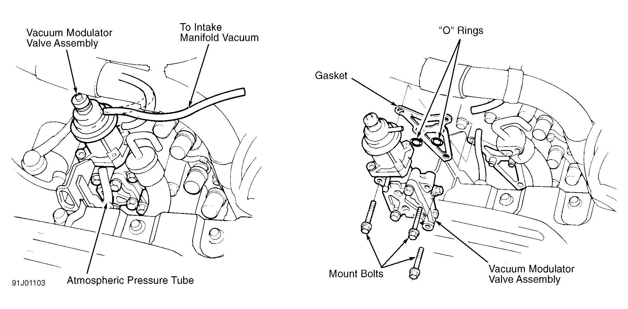 - If valve does not hold vacuum, replace modulator valve assembly. If valve holds vacuum, remove valve assembly. Apply 19.7-23.6 in. Hg to intake manifold fitting again to ensure modulator valve moves.