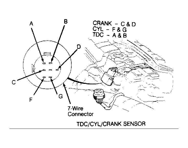 Application ECU Terminals (1) Resistance Integra CRANK B10 & B12 350-700 Ohms CYL C1 & C2 350-700 Ohms TDC C3 & C4 350-700 Ohms Legend CRANK No. 1 B15 & B16 600-950 Ohms CRANK No. 2 B14 & B13 600-950 Ohms CYL No. 1 B12 & B11 600-950 Ohms CYL No. 2 B9 & B10 600-950 Ohms (1) Terminal identifications are imprinted on ECU connector. - Check continuity to ground on each terminal. If continuity exists, disconnect sensor connector, and recheck appropriate ECU terminal for continuity to ground. If continuity still exists, repair short to ground in harness. If continuity does not exist, replace sensor assembly.