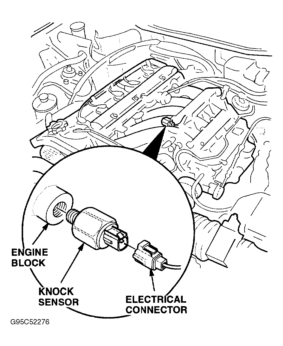 5. Install the new knock sensor and tighten it to 25 Ft lbs. (34 N.m). Reconnect the electrical connector.
