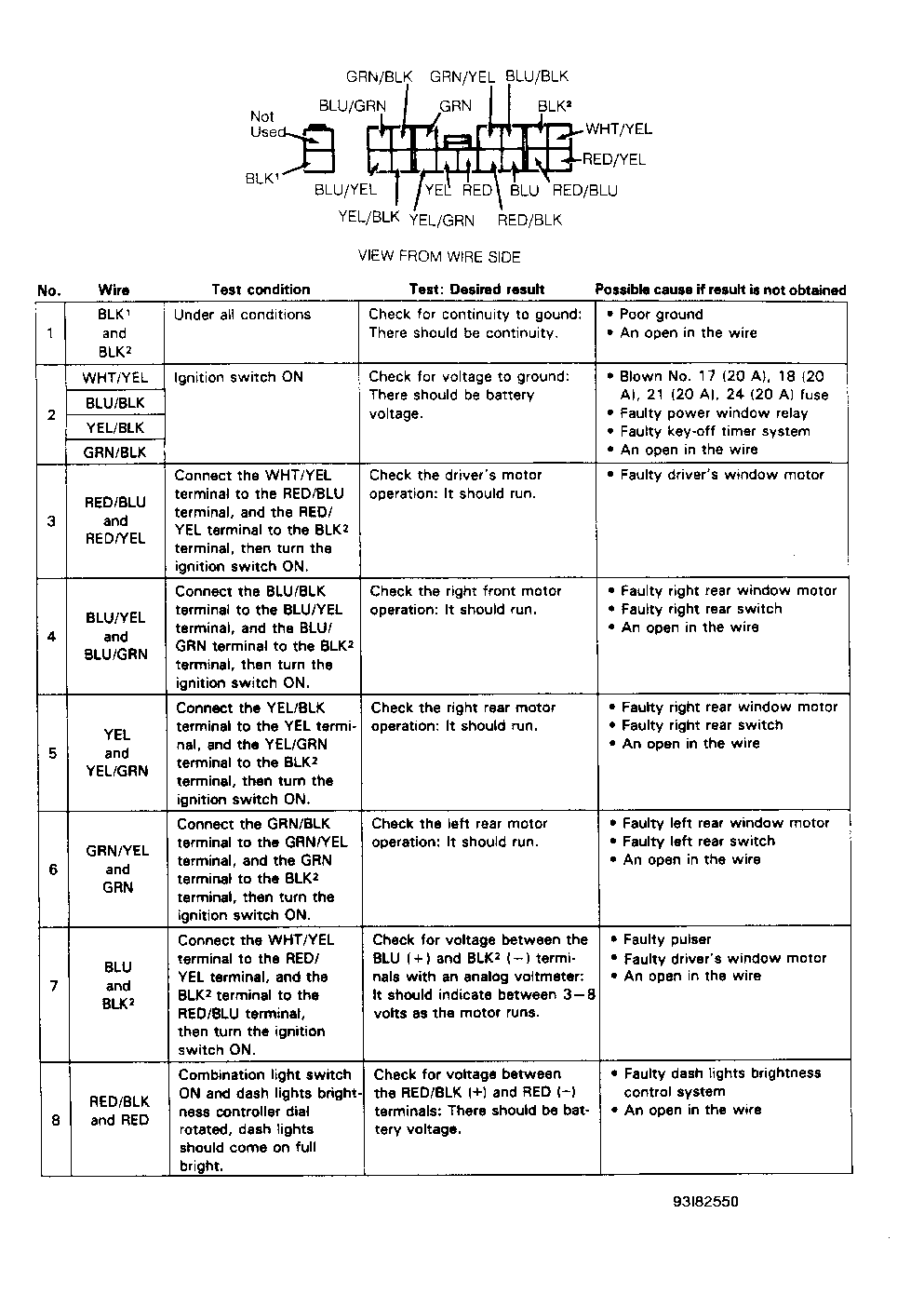 Home >> Acura >> 1992 >> Legend Base, Standard >> Repair and Diagnosis >> Body & Frame >> Power Windows >> Testing >> Switch Inputs Test
