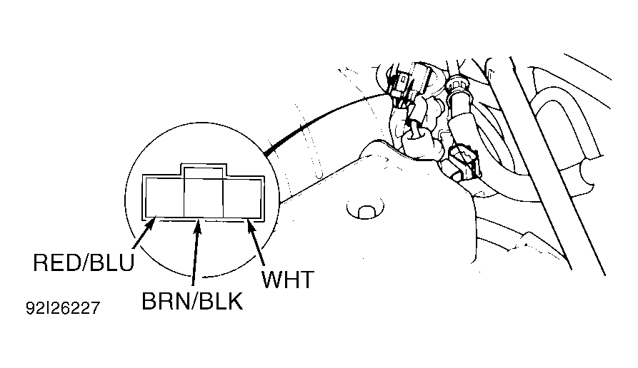 - Disconnect knock sensor connector. Check for continuity between test terminal D3 (right sensor) or D4 (left sensor) and body ground. If continuity is not present, go to step 4). If continuity is present for left sensor, repair short in Red/Blue wire between ECU connector terminal D4 and knock sensor. See Fig 1 . If continuity is present for right sensor, repair short in White wire between ECU connector terminal D3 and knock sensor.