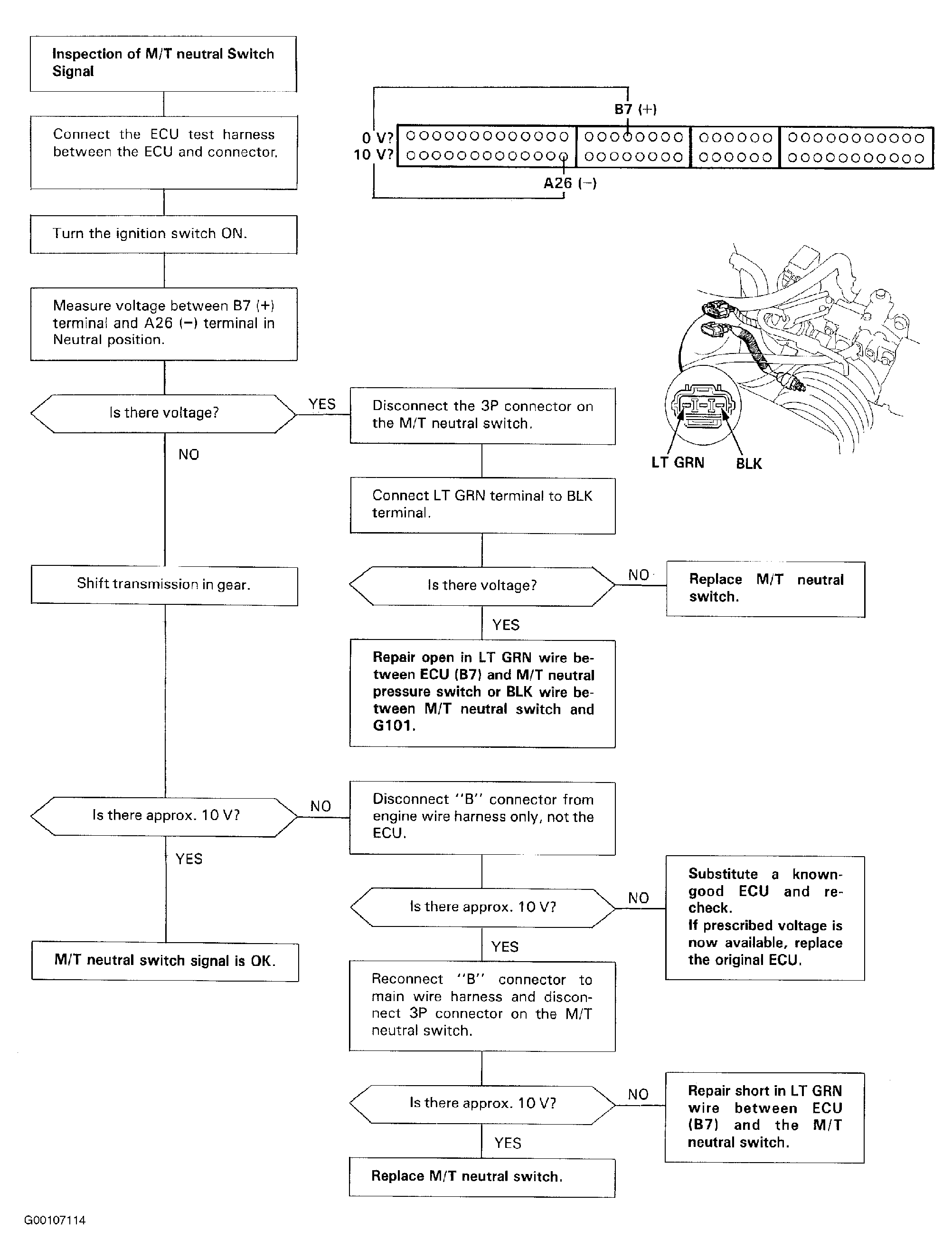 Fig 1: M/T Neutral Signal Switch Diagnostic Flow Chart