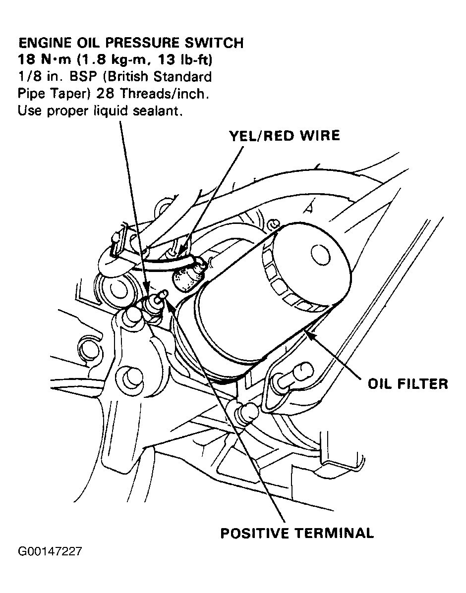 - Remove the YEL/RED wire from the oil pressure switch. See Fig 1 .