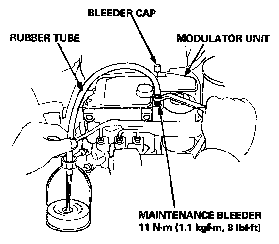 3. Connect a rubber tube of the appropriate diameter to the maintenance bleeder, and set the other end of the rubber tube in a suitable container.