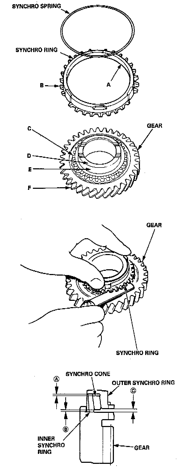 (C): (Outer Synchro Ring to Gear) 0.95 - 1.68 mm (0.037 - 0.066 inch)