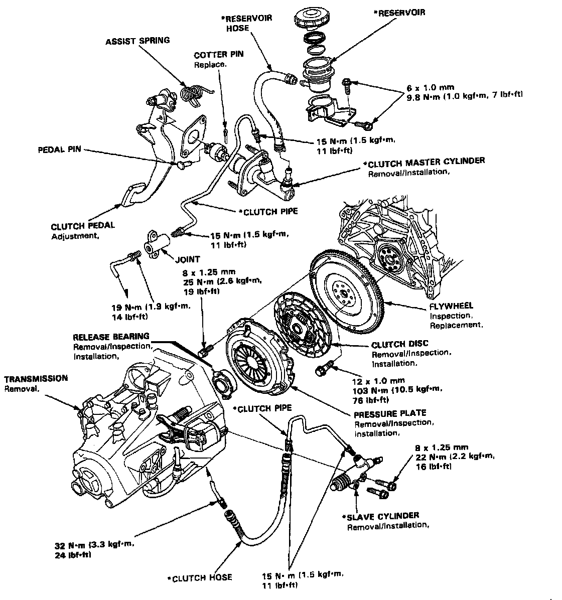 Y80 5-spd M/T, Clutch Assembly Torque: