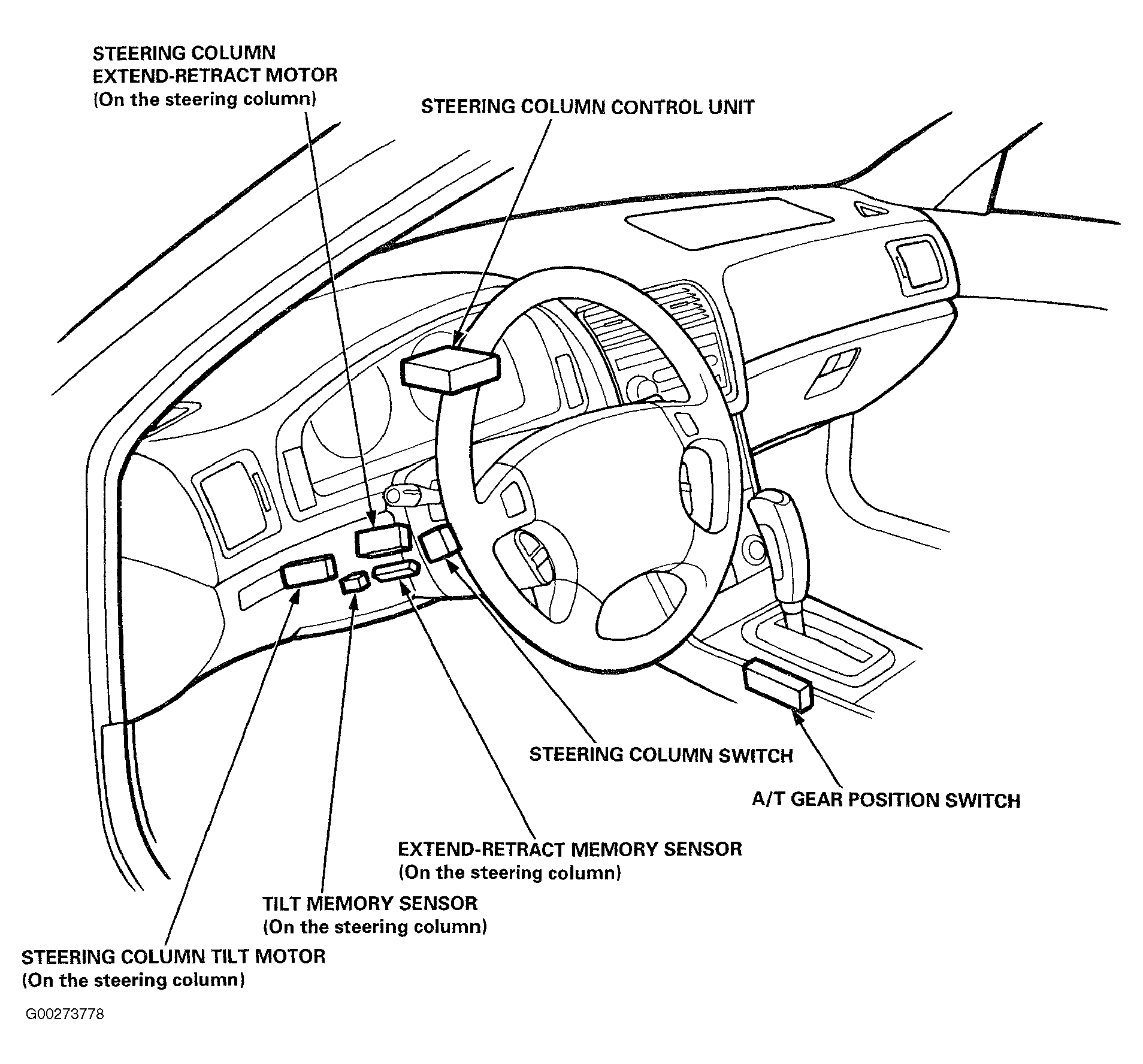 Fig 2: Identifying Tilt/Extend-Retract Steering Column Component Locations