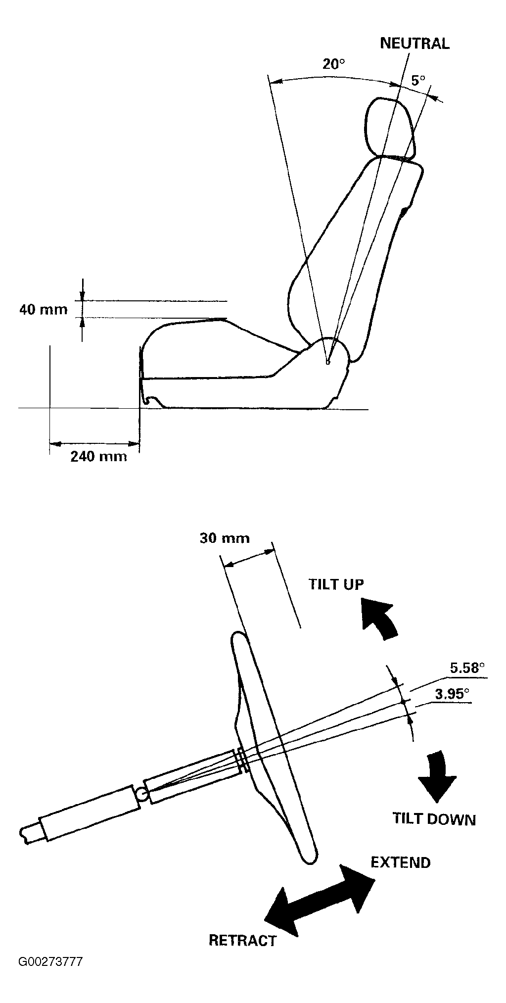 The seat and steering column positions can be memorized within the ranges shown. See