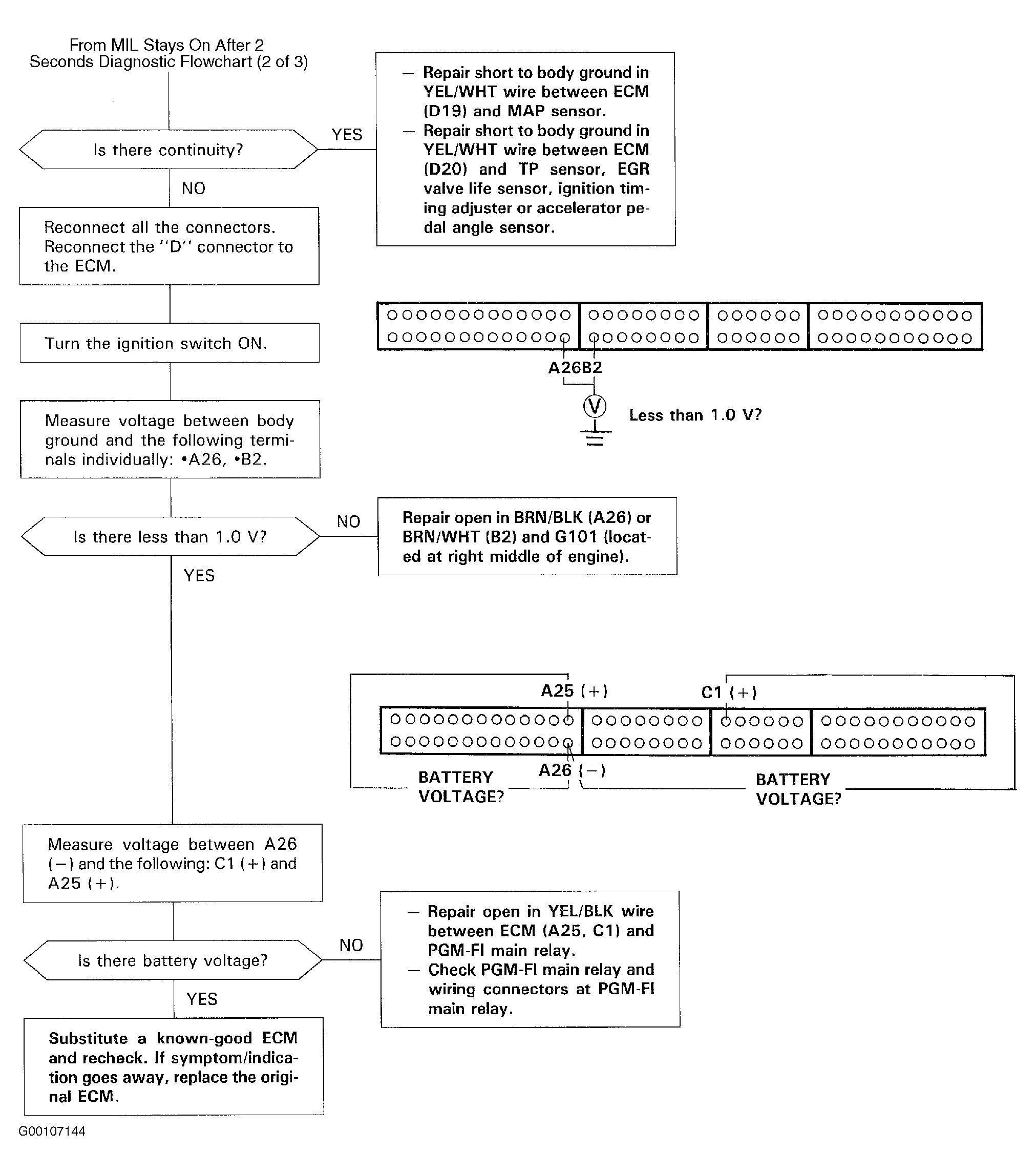 Fig 2: MIL Stays On After 2 Seconds Diagnostic Flowchart (2 Of 3)