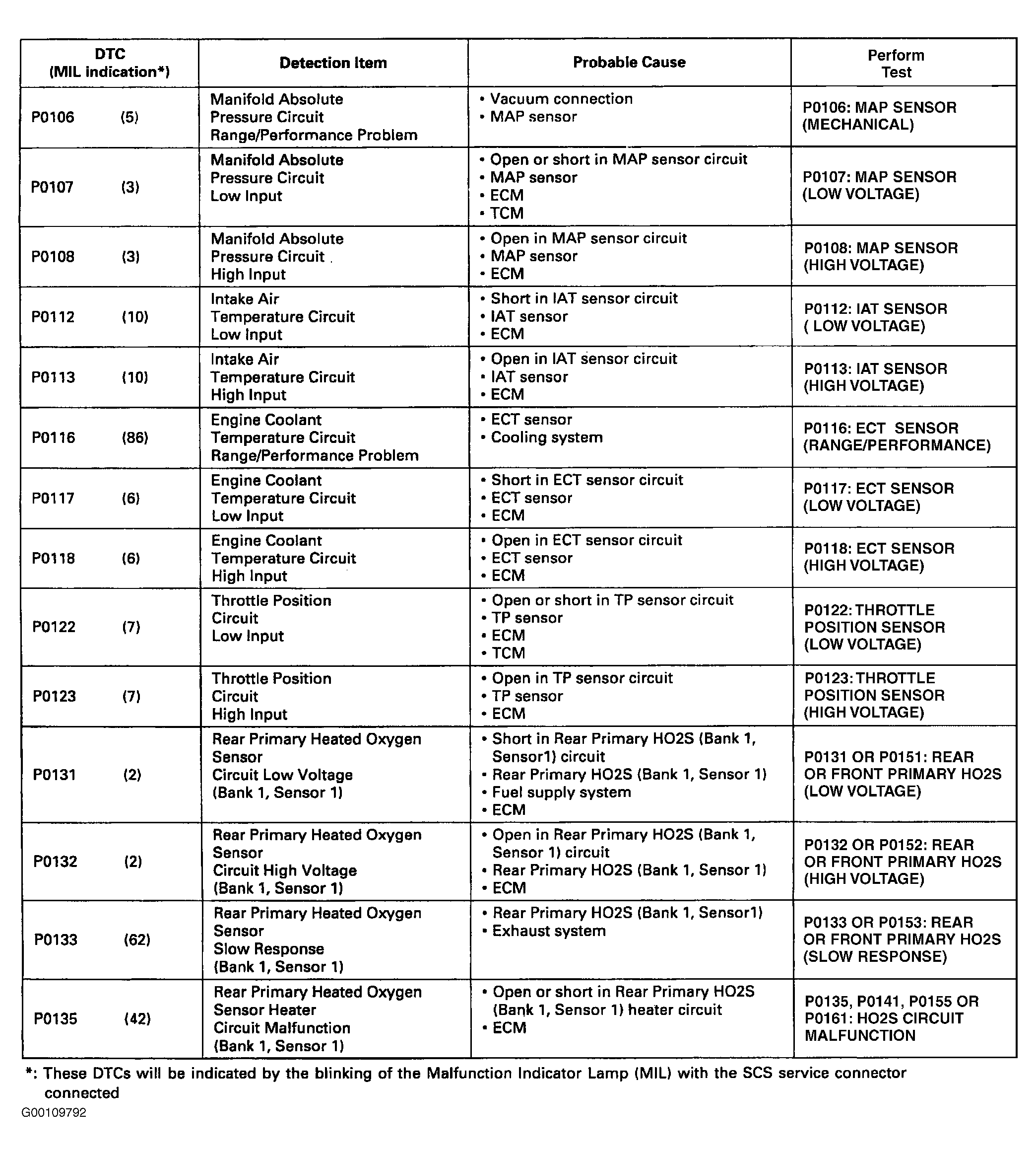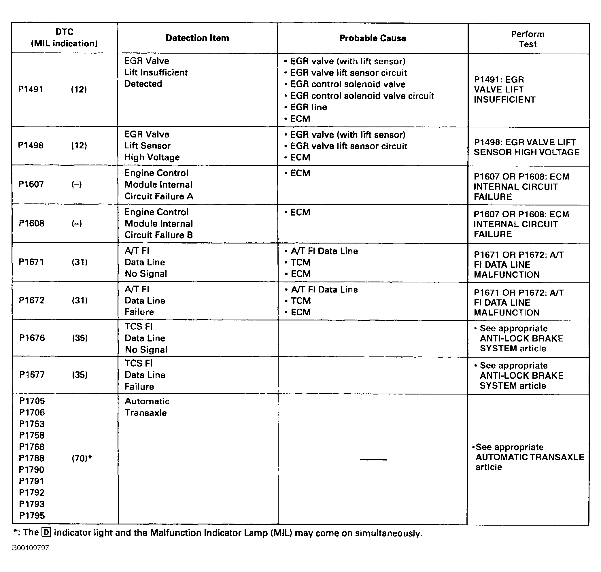 For DTC and MIL problem code definitions, see Fig 1 -Fig 6 . Perform appropriate diagnostic test as directed.