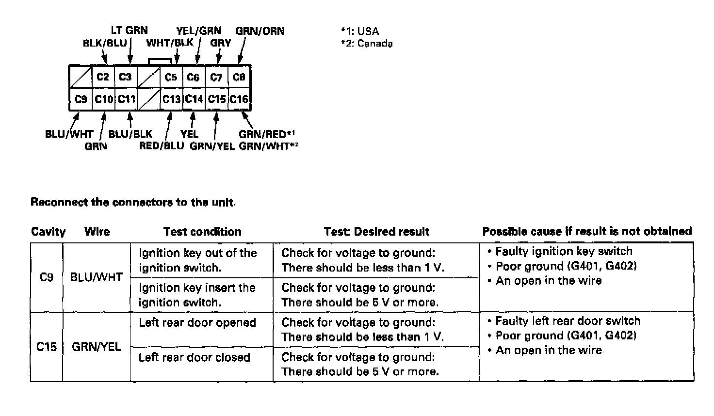 1. Remove the driver's door panel, and disconnect the 20P connector from the door unit.