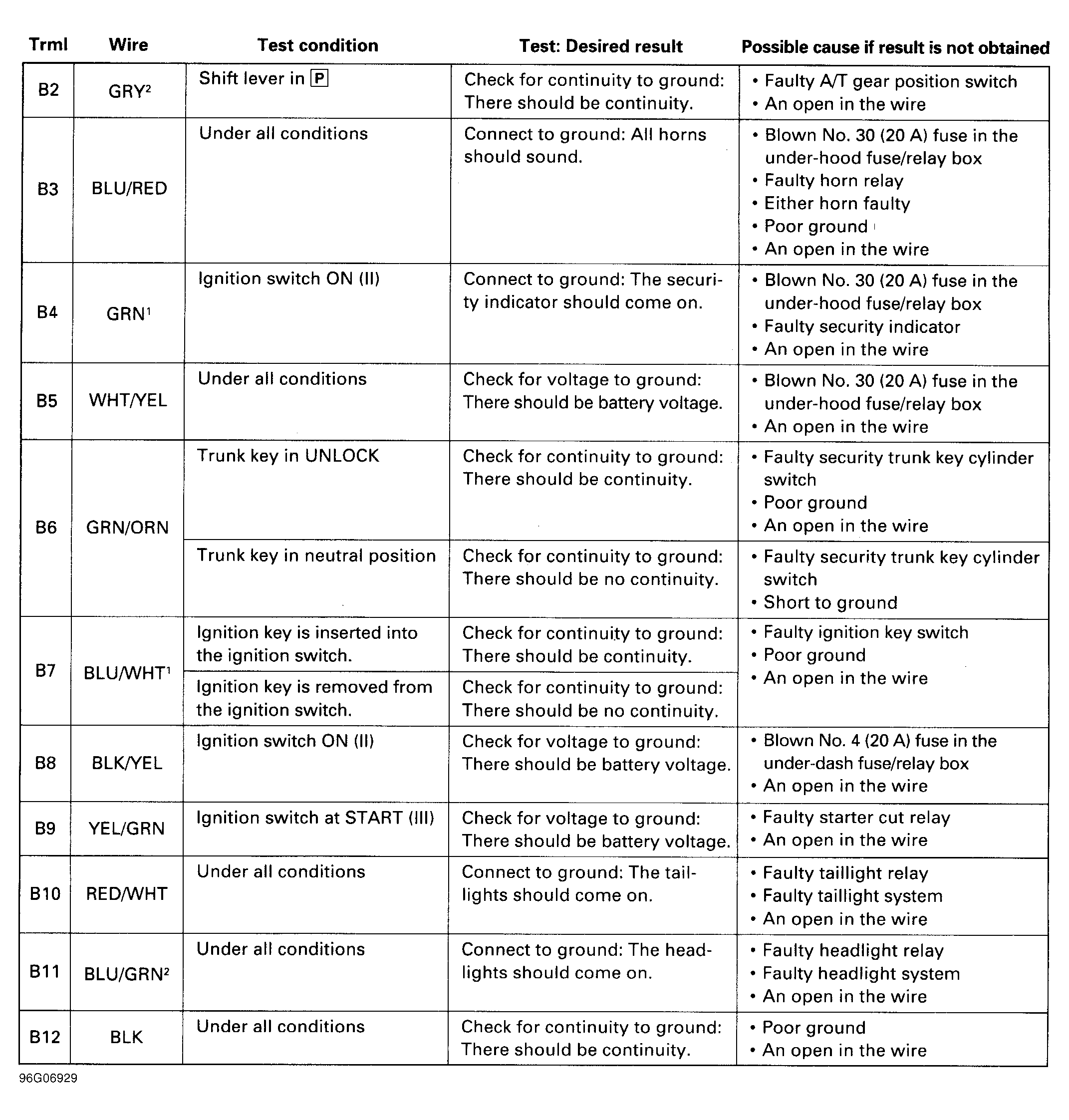 Home >> Acura >> 1997 >> 3.2TL >> Repair and Diagnosis (Single Page) >> Accessories & Equipment >> Anti-Theft Systems >> Anti-Theft System >> System Tests >> Security Control Unit Input Tests