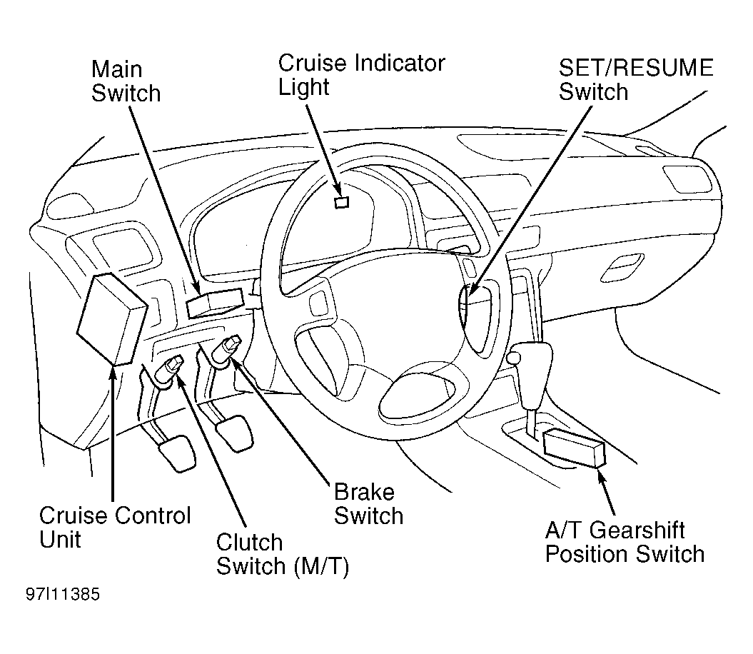 - Disable air bag system. See appropriate AIR BAG RESTRAINT SYSTEMS article. Turn ignition off. Remove instrument panel lower left cover. Remove left knee bolster. Cruise control unit is located near left kick panel. See Figure