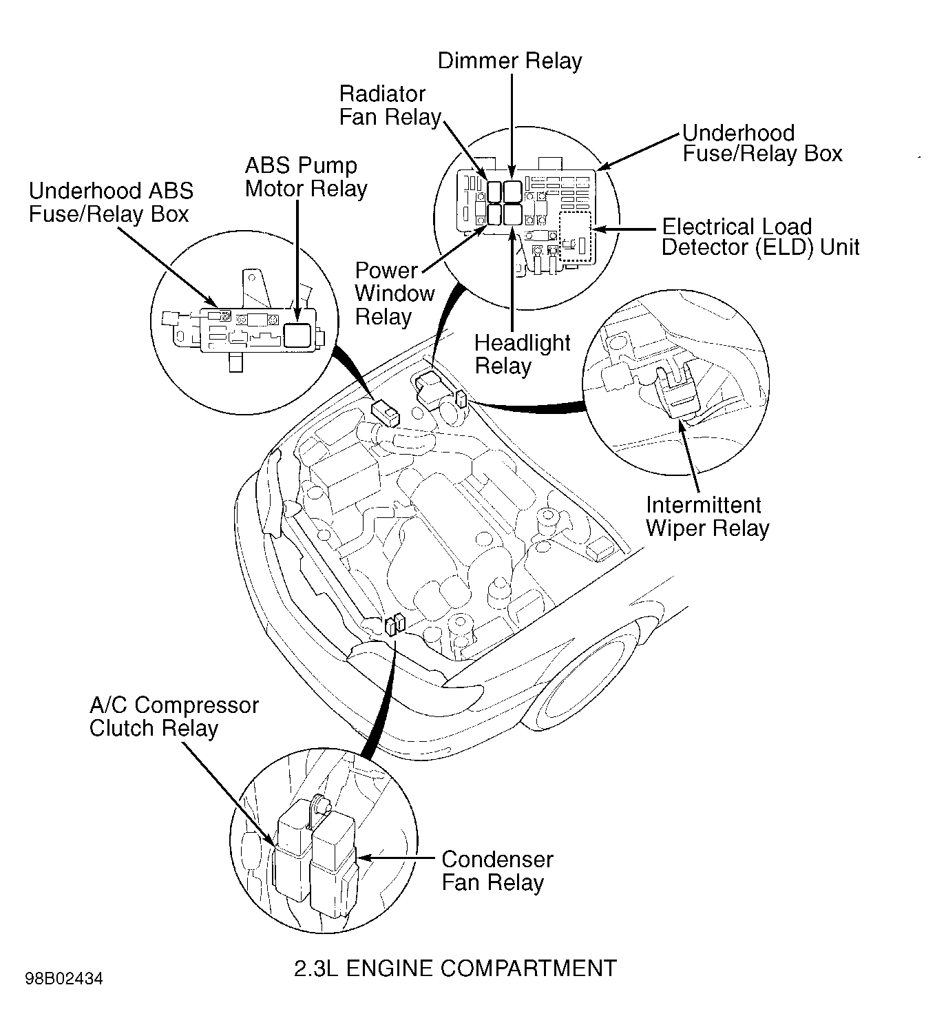 Underhood ABS Fuse/Relay Box (2.3L) On right side of engine compartment. See Figure .