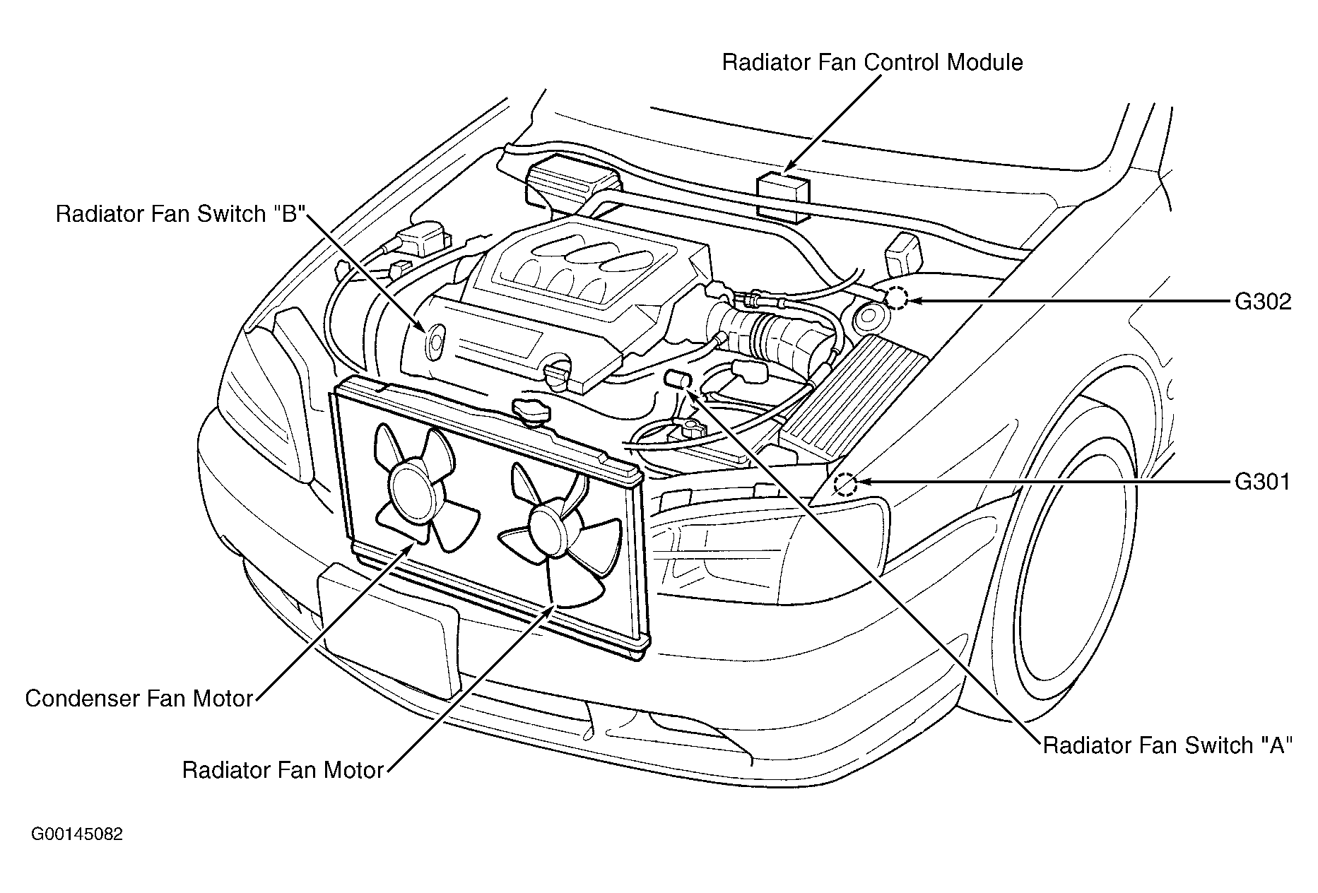 Radiator Fan Control Module Behind center of dash. See Figure .