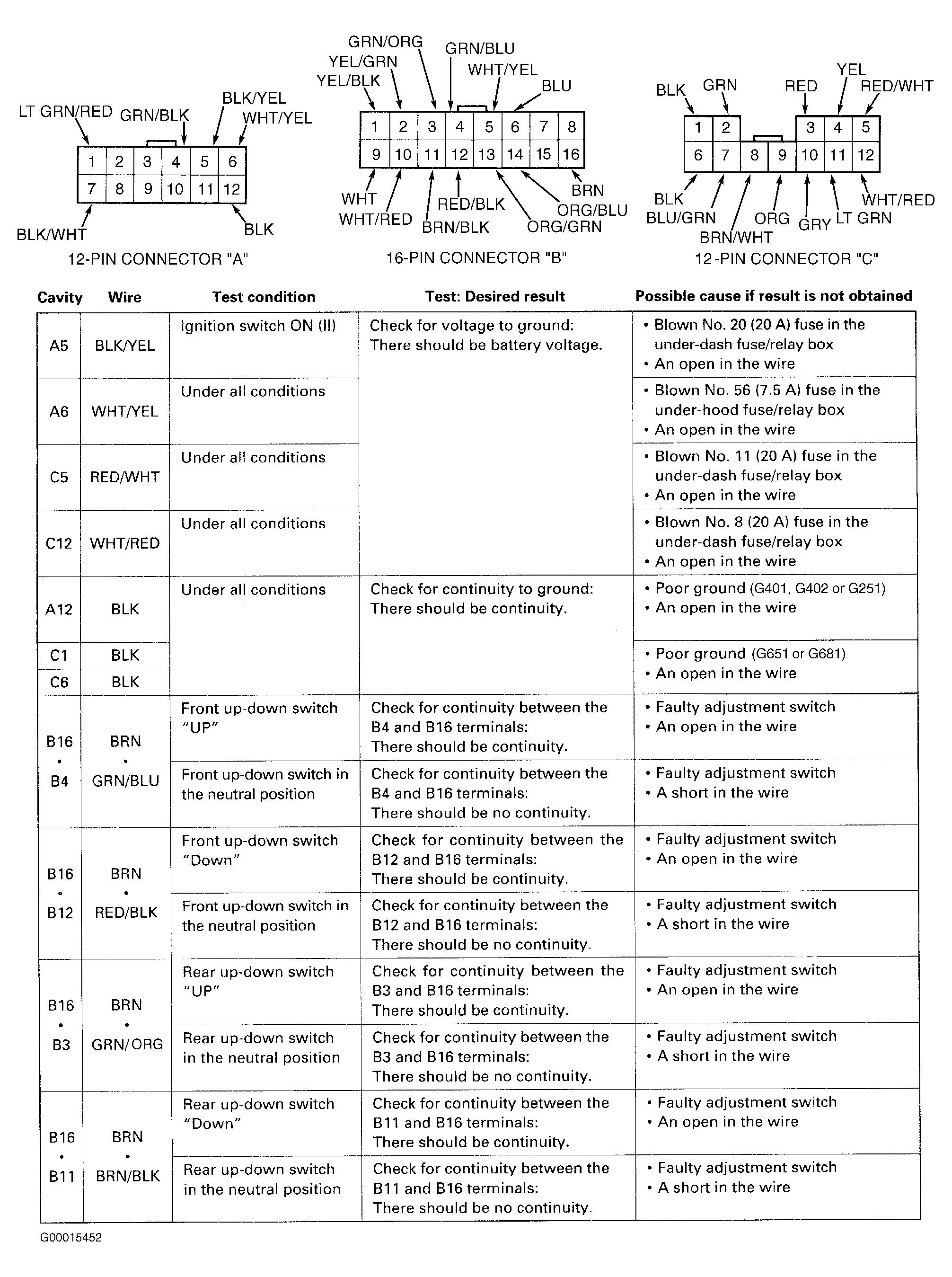 Home >> Acura >> 2000 >> 3.5RL >> Repair and Diagnosis (Single Page) >> Accessories & Equipment >> Seats >> Driver's Position Memory System >> System Tests >> Power Seat Control Unit Input