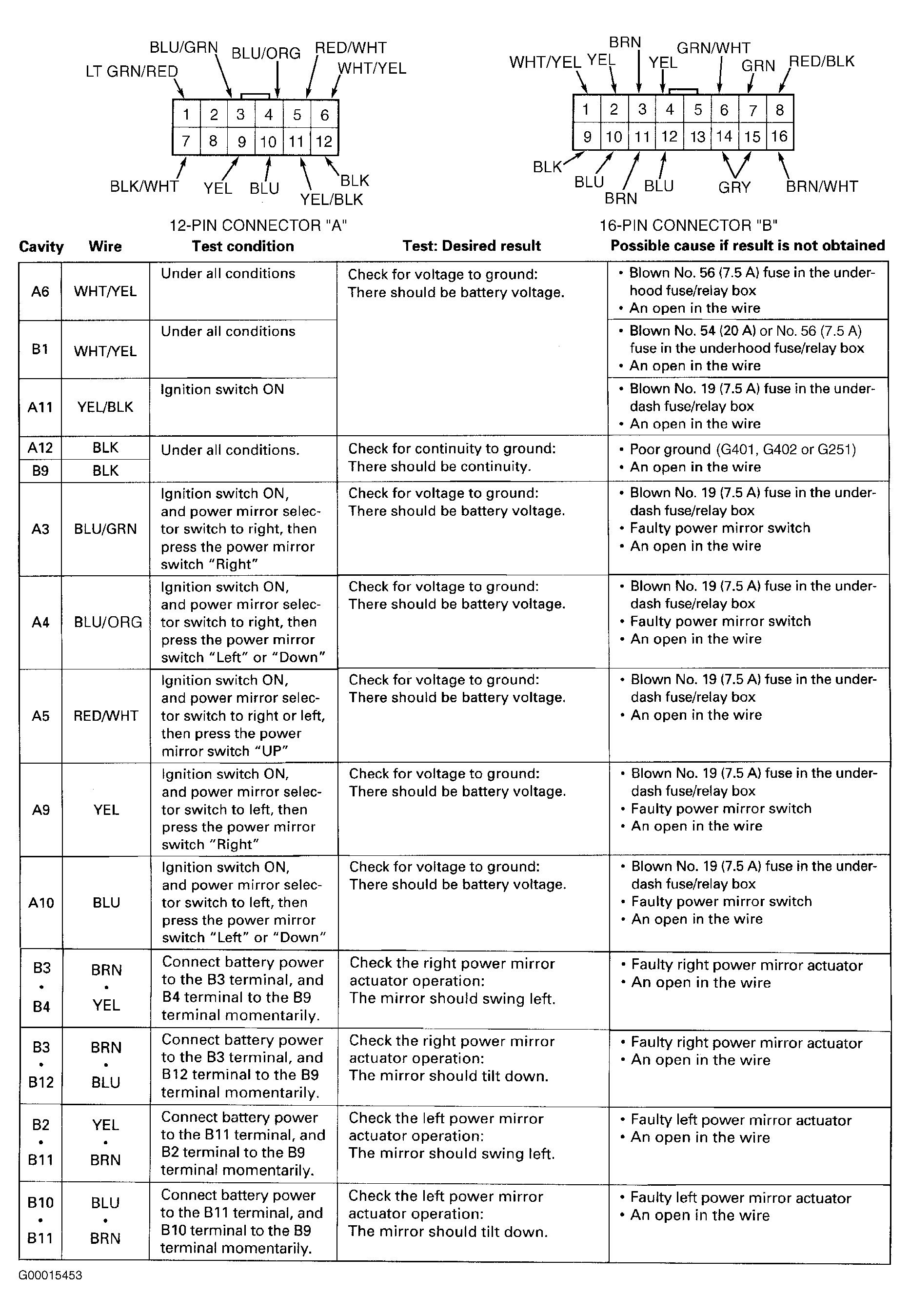 Fig 1: Power Mirror Control Unit Input Test (1 Of 2)