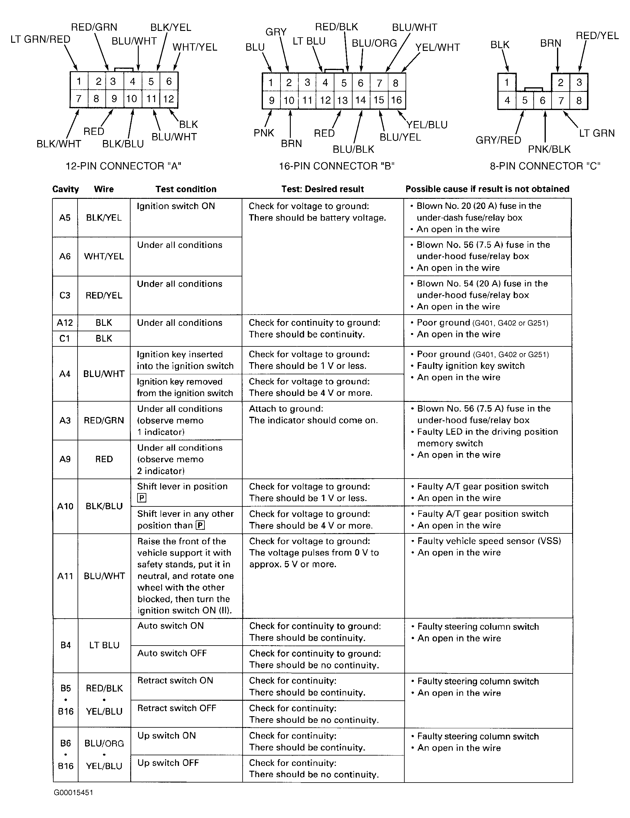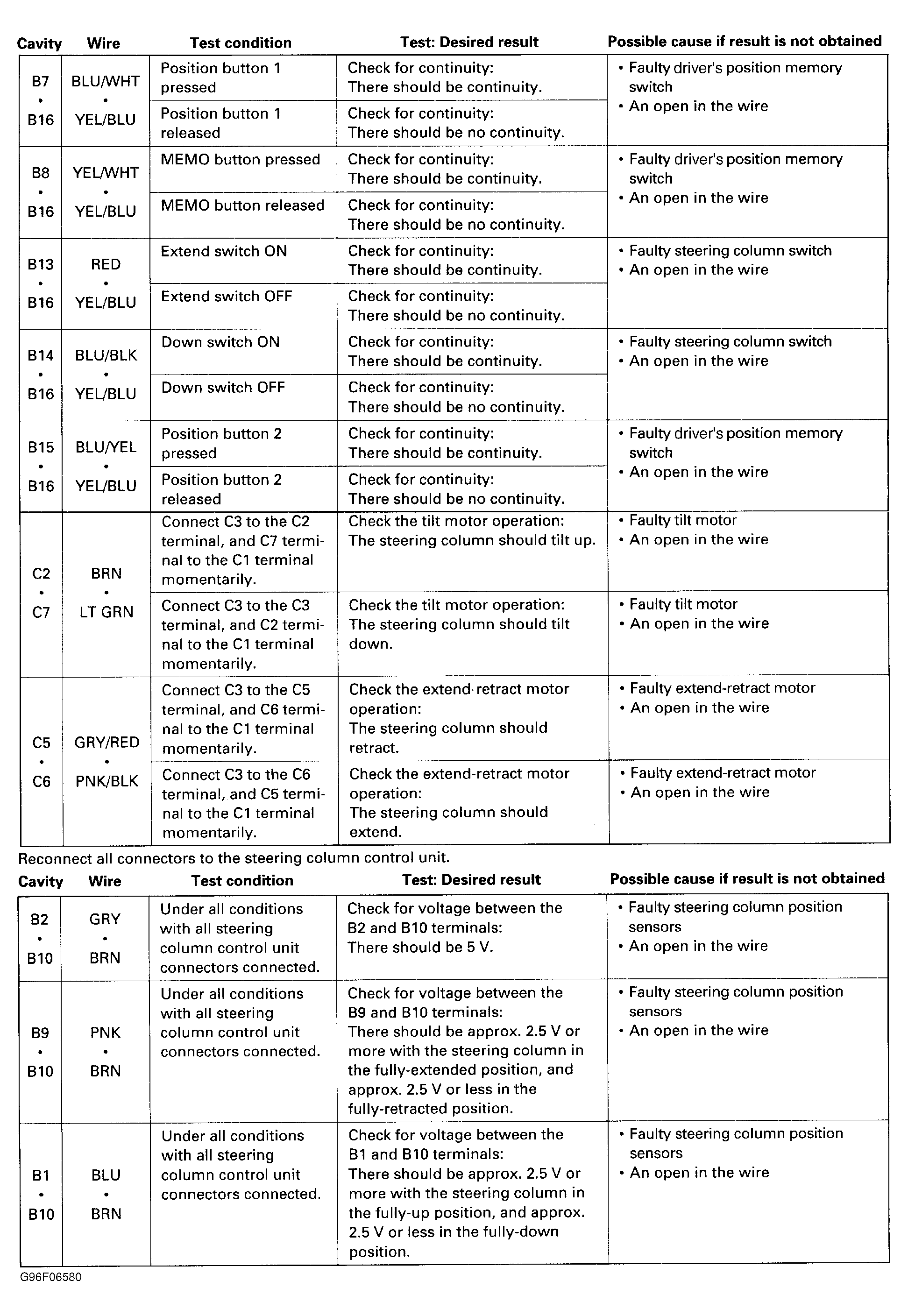 Home >> Acura >> 2000 >> 3.5RL >> Repair and Diagnosis >> Body & Frame >> Mirrors >> Driver's Position Memory System >> System Tests >> Steering Column Control Unit Input