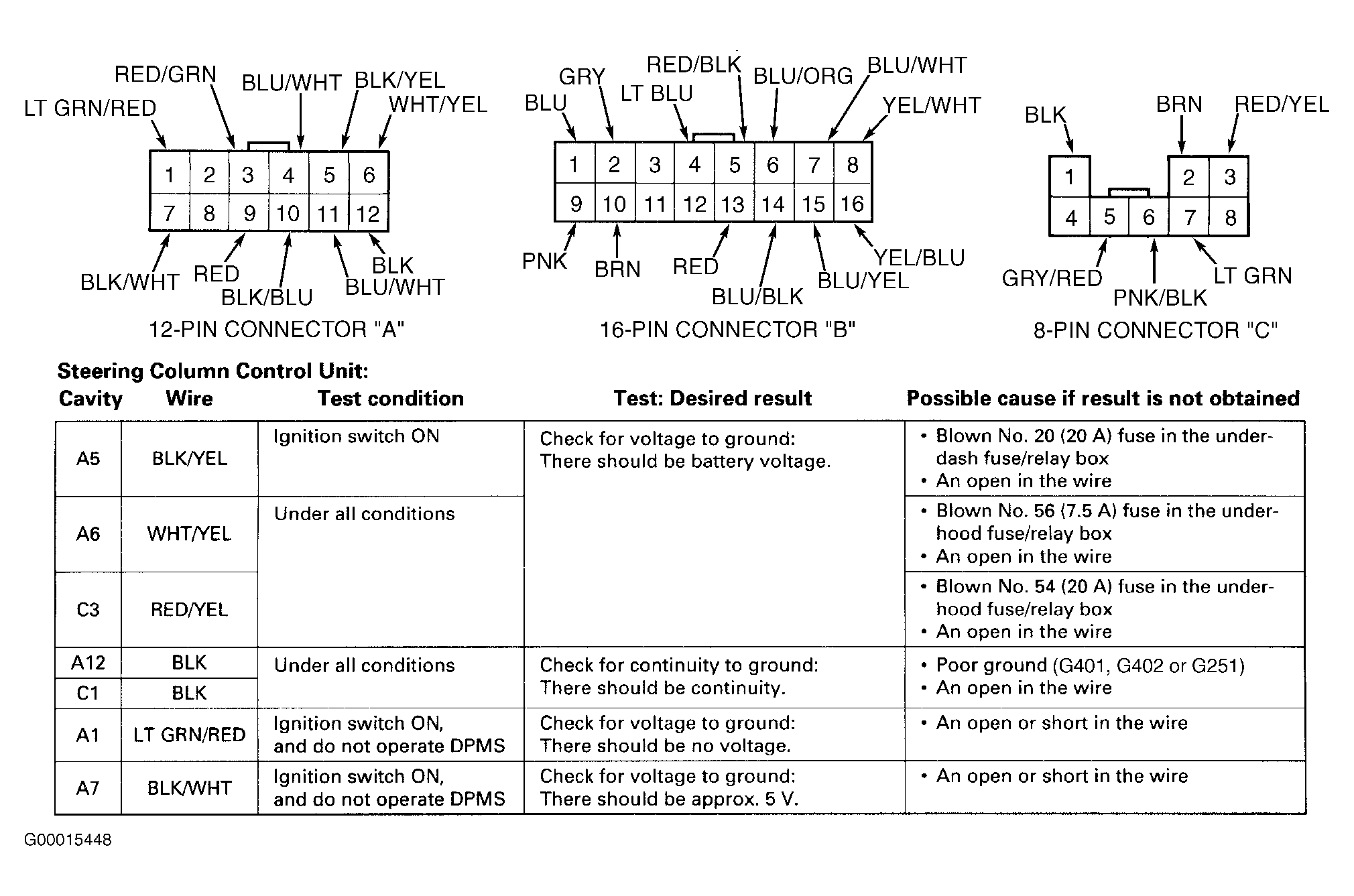 Fig 1: Power & Ground Circuit Trouble Shooting Chart (Steering Column Control Unit)