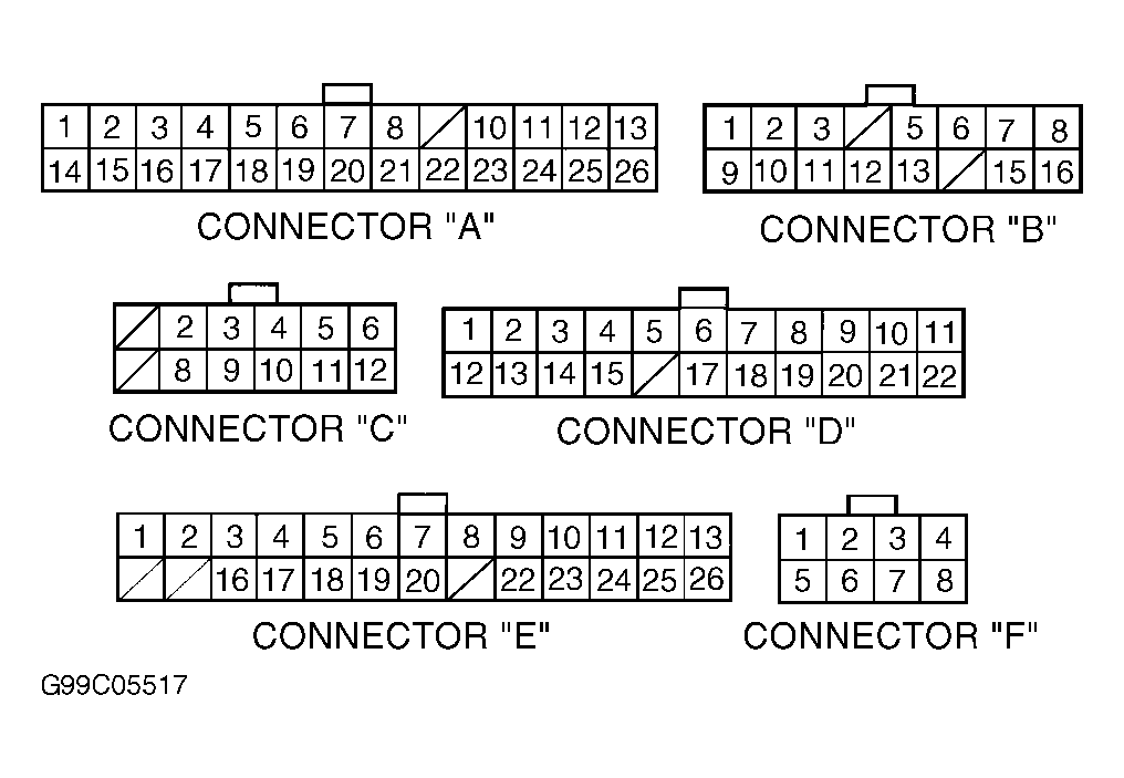 NOTE: Use illustration to identify PCM connectors. See Figure.
