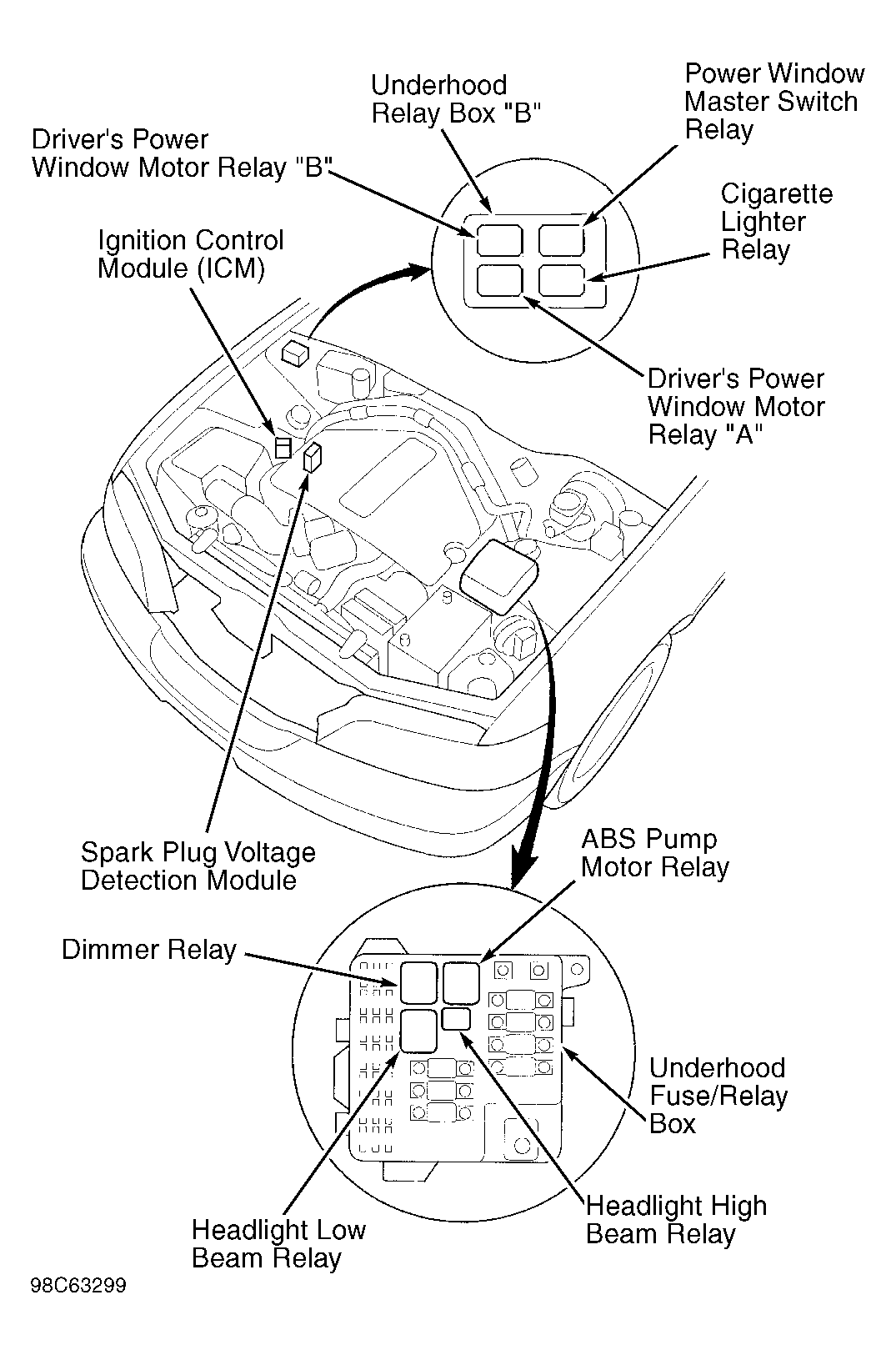 Ignition Control Module (ICM) On right side of engine compartment. See Figure .