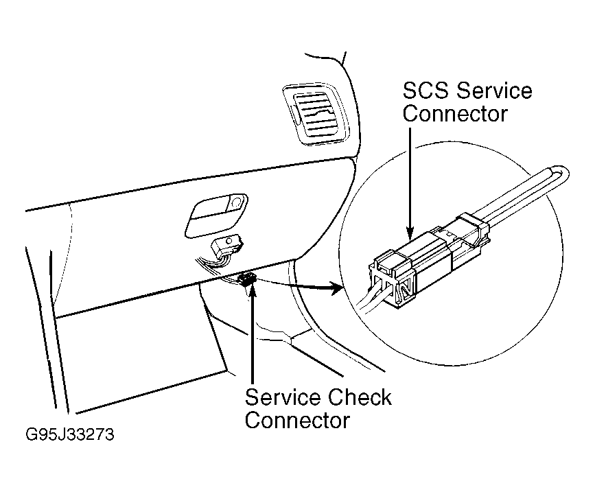 1. Perform PCM reset procedure. SeePCM RESET PROCEDURE/CLEARING DIAGNOSTIC TROUBLE CODES  under SELF-DIAGNOSTIC SYSTEM. Start engine and run at 3000 RPM, with transmission in Park or Neutral, until radiator fan comes on. Allow engine to idle. Connect SCS service connector. See Figure. Test drive vehicle at 40-55 MPH for about 2 minutes. Decelerate for at least 3 seconds with throttle fully closed. Reduce vehicle speed and hold at 35 MPH until readiness code comes on. If DTC P0420 resets, go to next step. If DTC P0420 does not reset, problem is intermittent. System is functioning properly at this time.