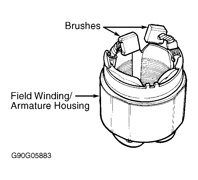 2. Check continuity between each brush and armature housing (ground). Continuity should not exist. If continuity exists, replace field winding/armature housing assembly.