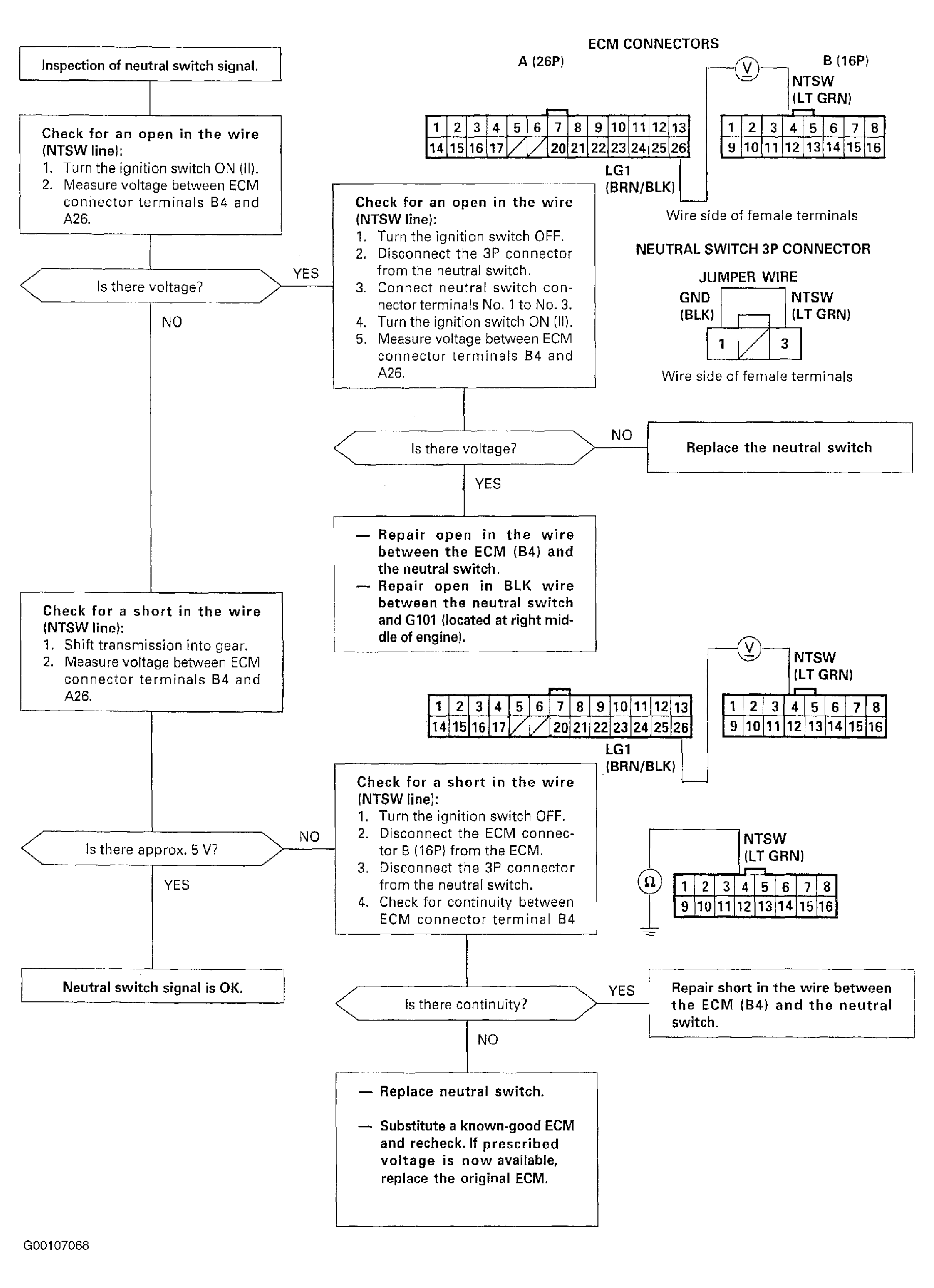 This signals the ECM when the transmission is in Neutral. For troubleshooting of the M/T neutral position switch signal circuit, see Fig 2