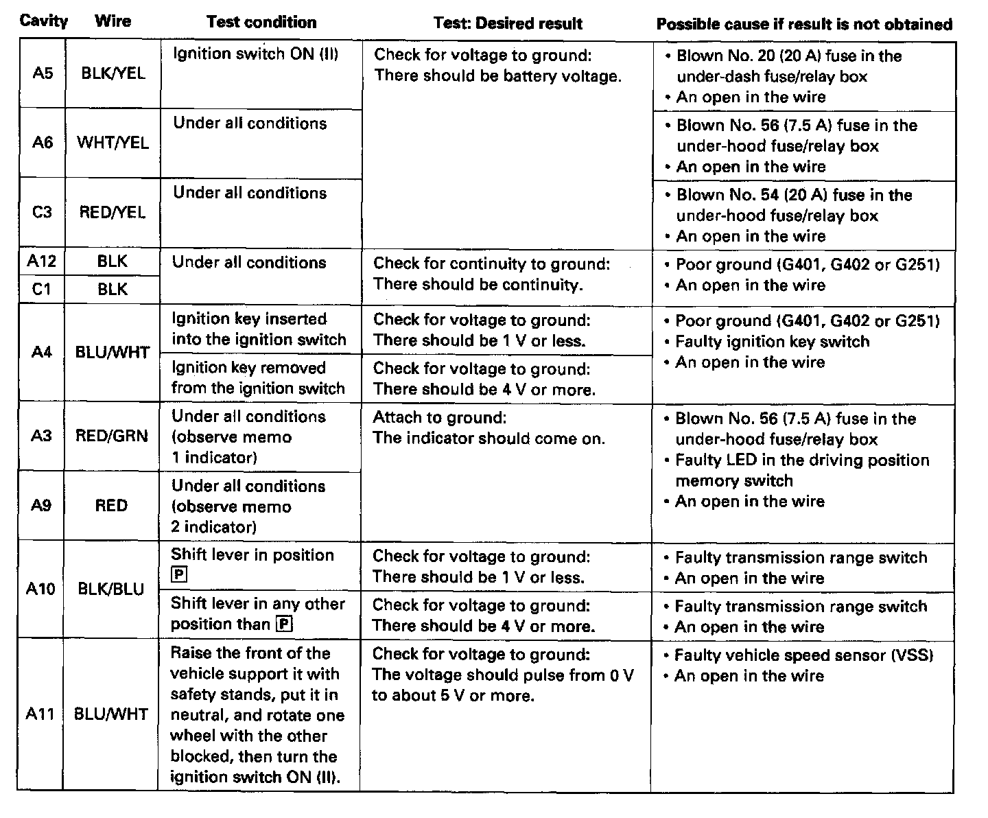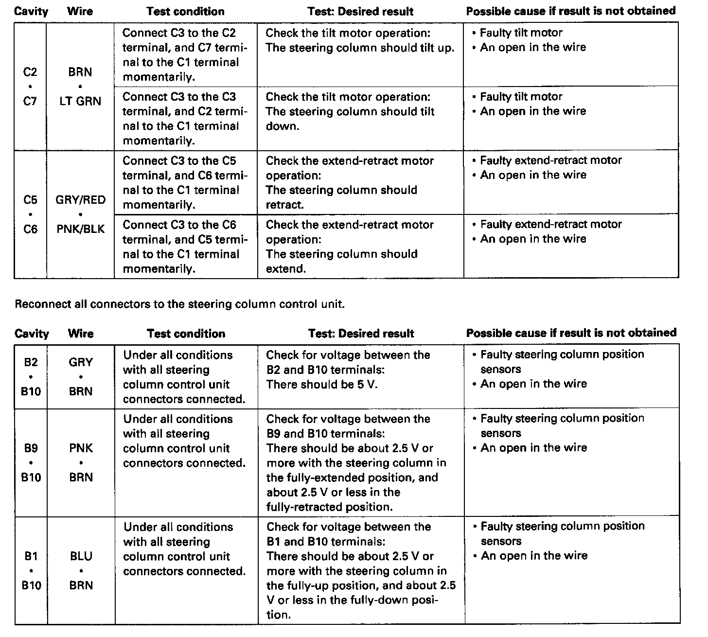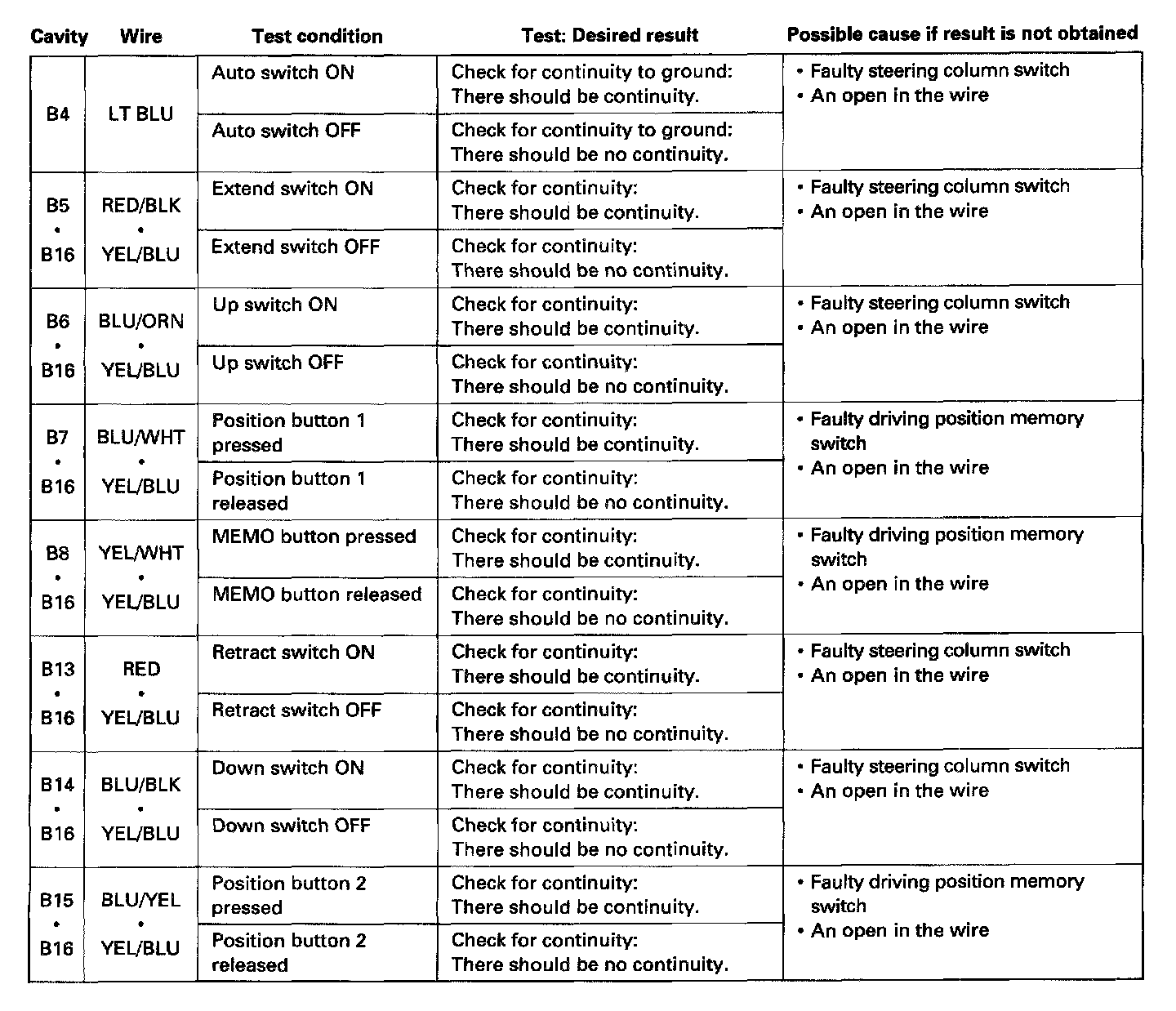 Home >> Acura >> 2000 >> RL V6-3474cc 3.5L >> Repair and Diagnosis >> Accessories and Optional Equipment >> Memory Positioning Systems >> Testing and Inspection >> Component Tests and General Diagnostics >> Steering Column Control Unit Input Test