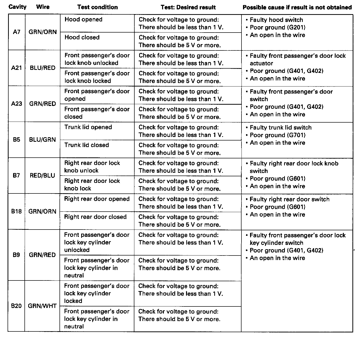 Home >> Acura >> 2000 >> RL V6-3474cc 3.5L >> Repair and Diagnosis >> Body and Frame >> Body Control Systems >> Body Control Module >> Testing and Inspection >> Passenger's