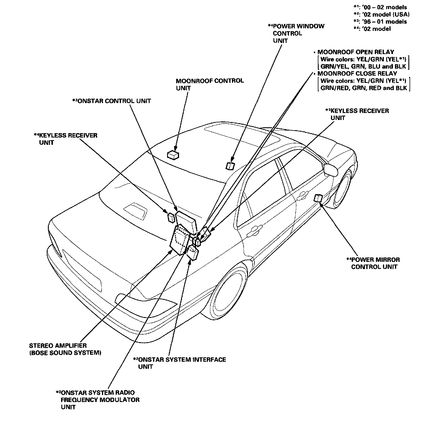 Relay And Control Unit Location - Door, Roof And Rear Bulkhead:
