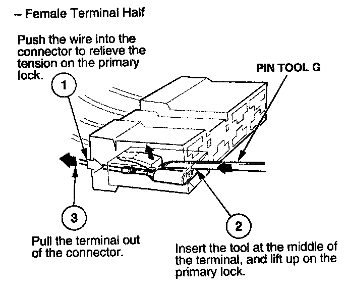 Home >> Acura >> 2000 >> RL V6-3474cc 3.5L >> Repair and Diagnosis >> Powertrain Management >> Computers and Control Systems >> Engine Control Module >> Diagrams >> Diagnostic Aids >> Terminal Replacement Procedure >> How to Replace Connector Terminals