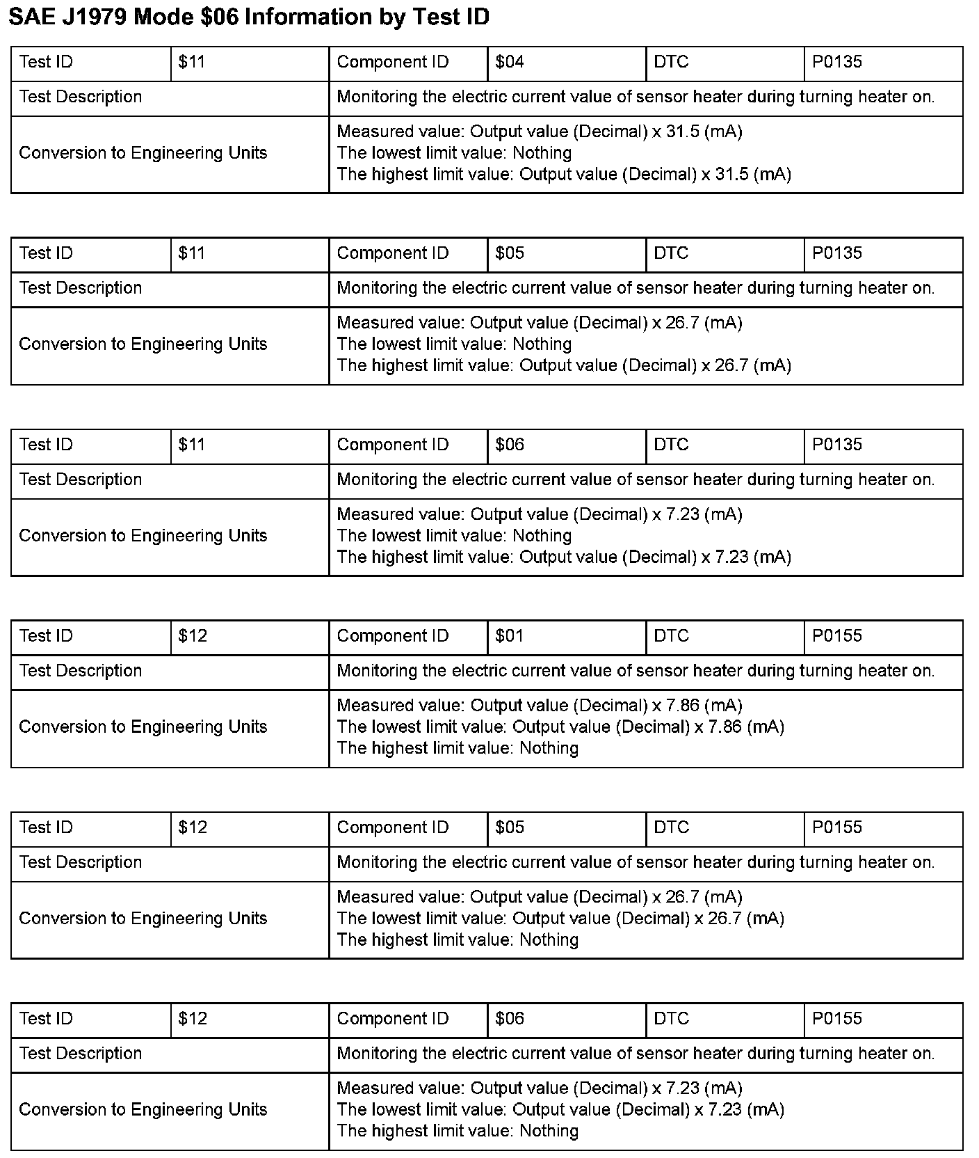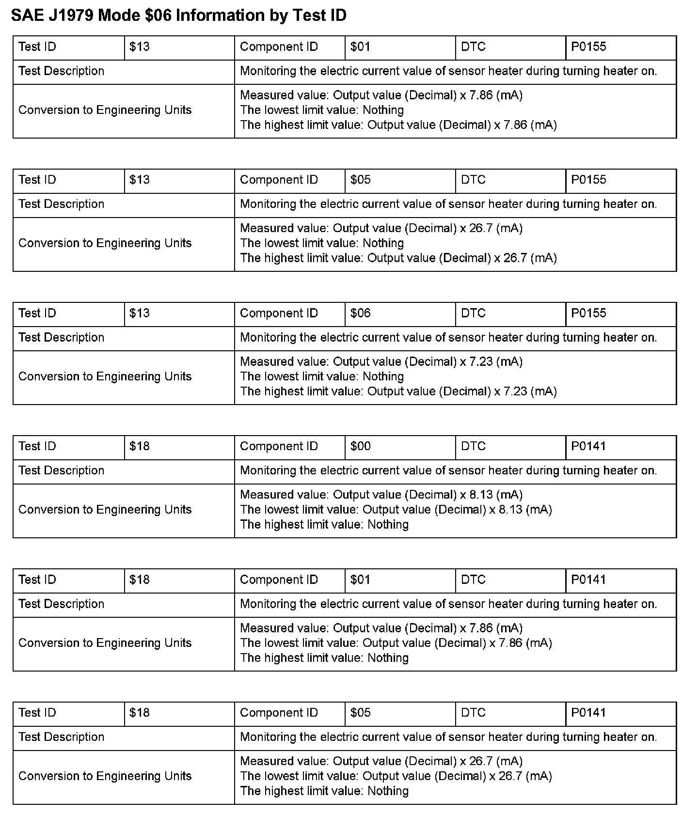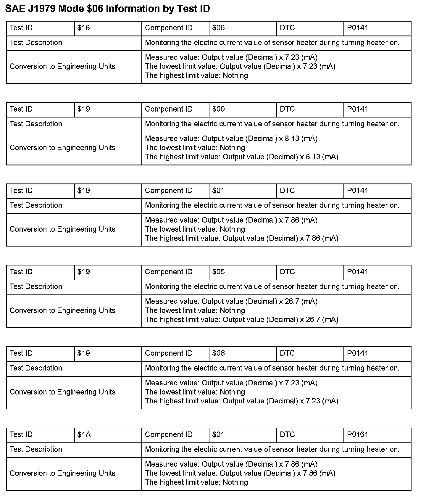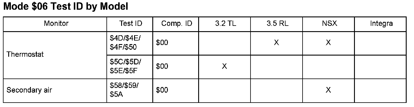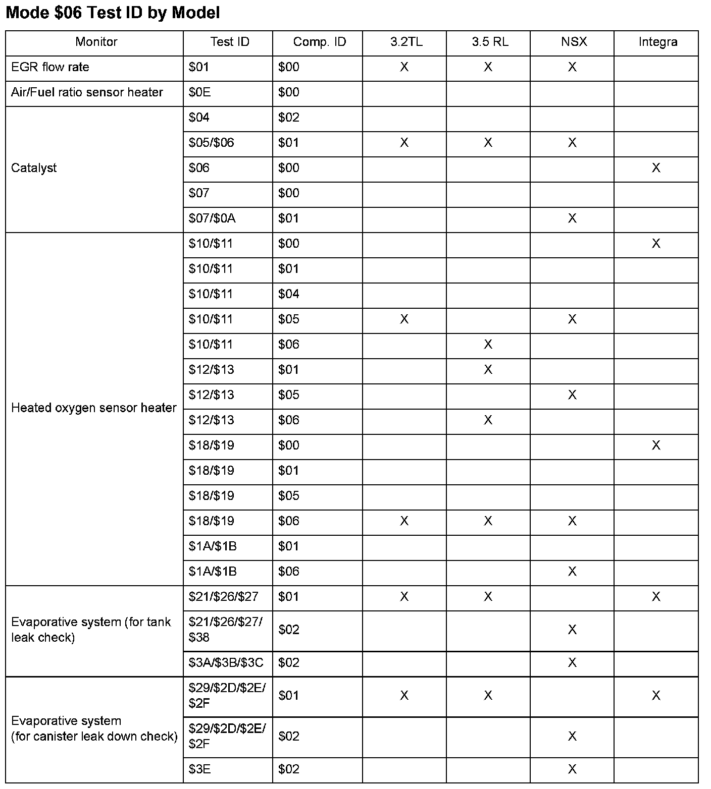 MODE $06 DATA CHARTSTest ID By Model (1 of 2):