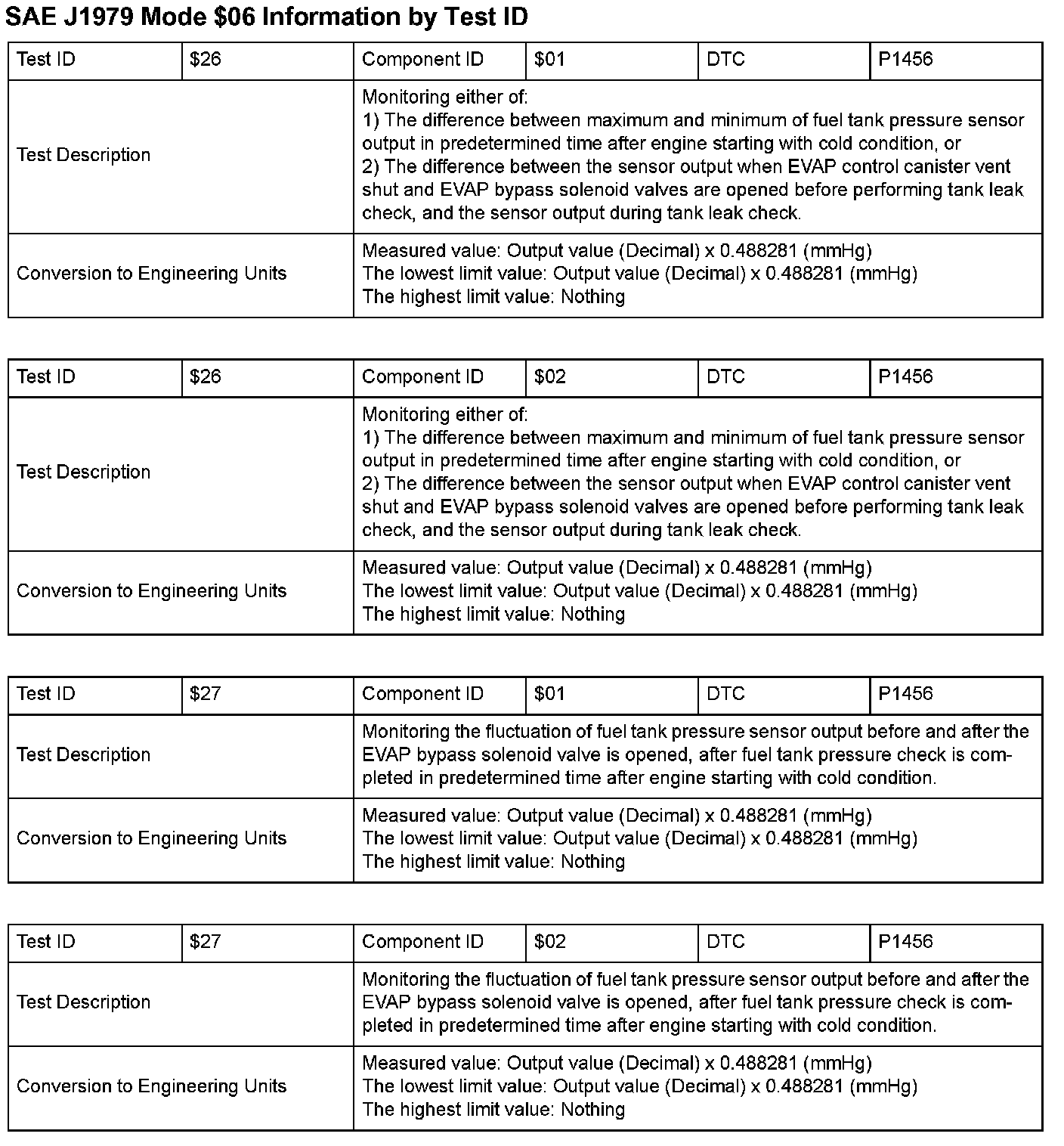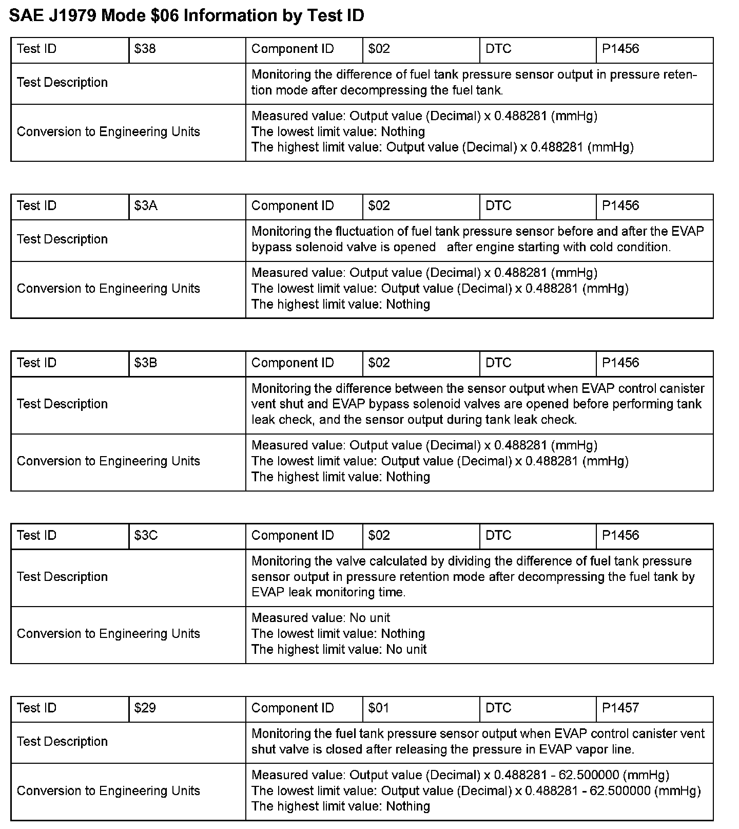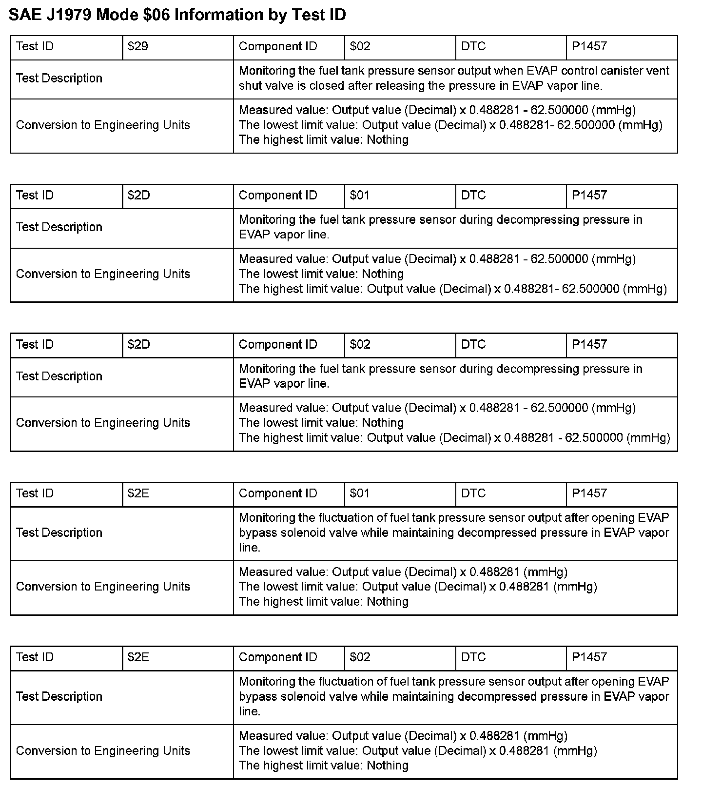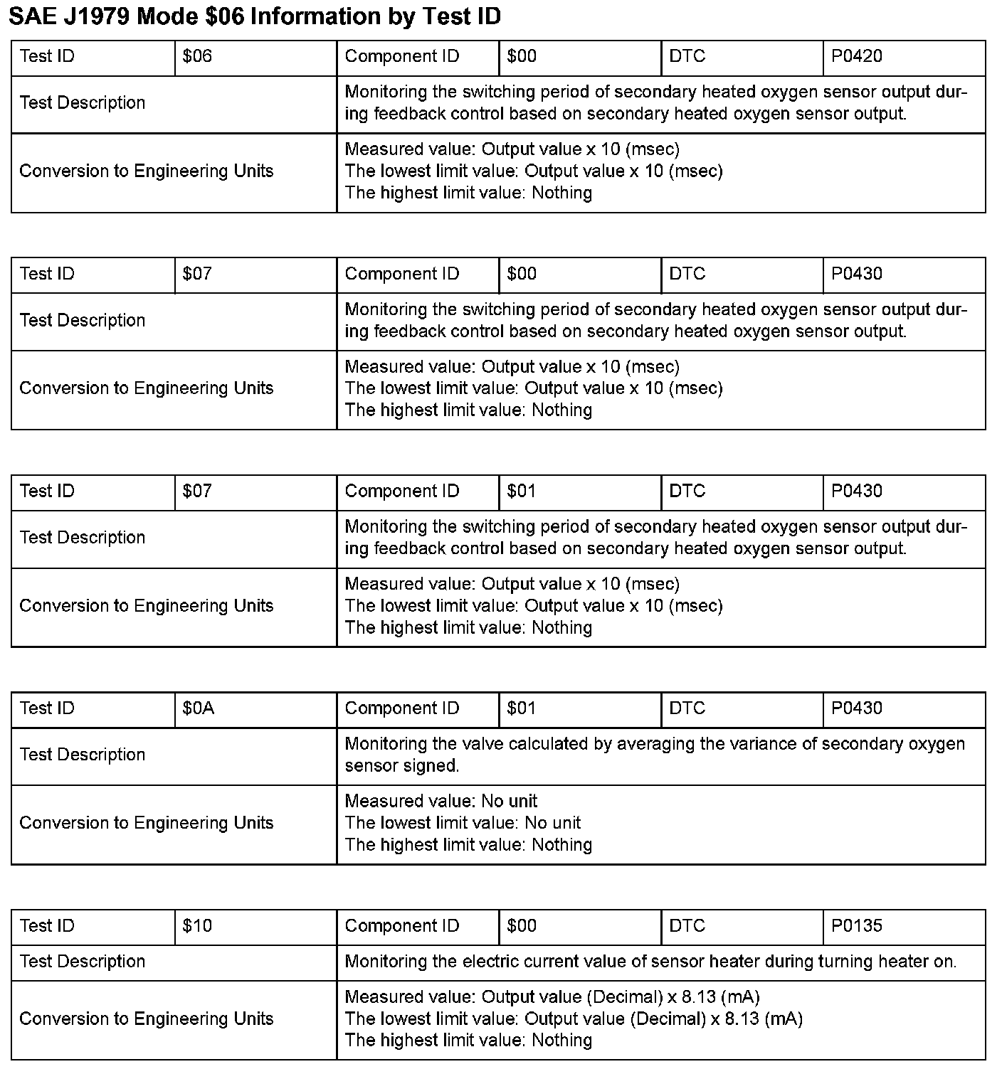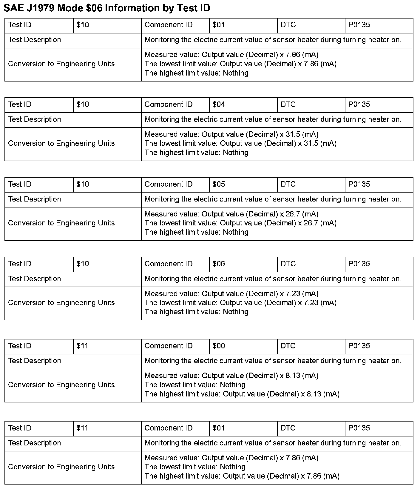 MODE $06 DATA CHARTSTest ID By Model (1 of 2):
