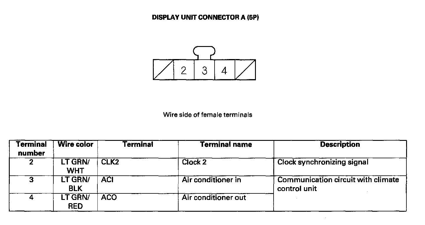 Display Unit Inputs And Outputs For Connector A (5P):
