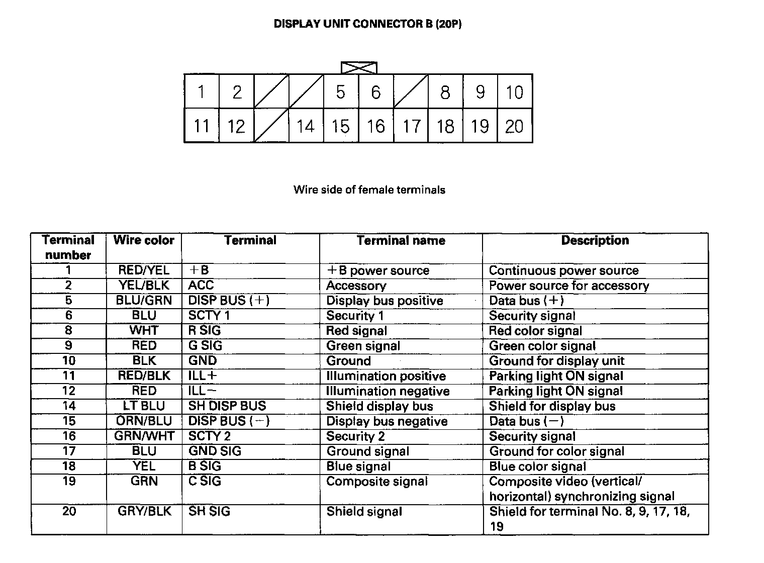 Display Unit Inputs And Outputs For Connector B (20P):