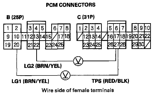 6. Reconnect the A (32P) and B (25P) connectors to the PCM.