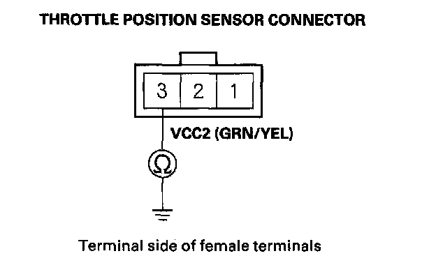 YES - Check for a short to ground between the No. 3 terminal of the TPS connector and ground. If the wire is OK, replace the PCM.