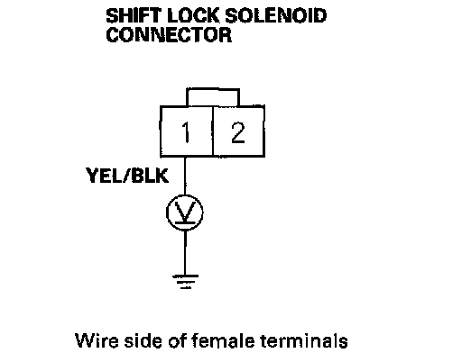 NOTE: Do not connect the No. 2 terminal to the battery positive terminal or you will damage the diode inside the shift lock solenoid.