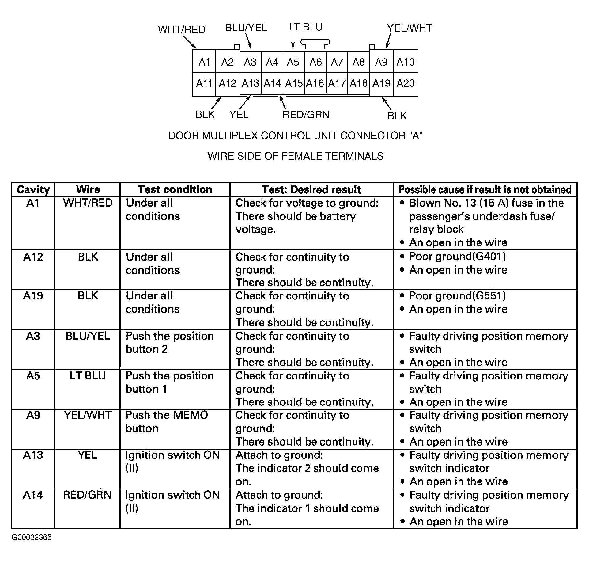 Home >> Acura >> 2002 >> 3.2CL Base >> Repair and Diagnosis (Single Page) >> Body & Frame >> Seats >> Driver's Position Memory System >> System Tests >> Door Multiplex Control Unit