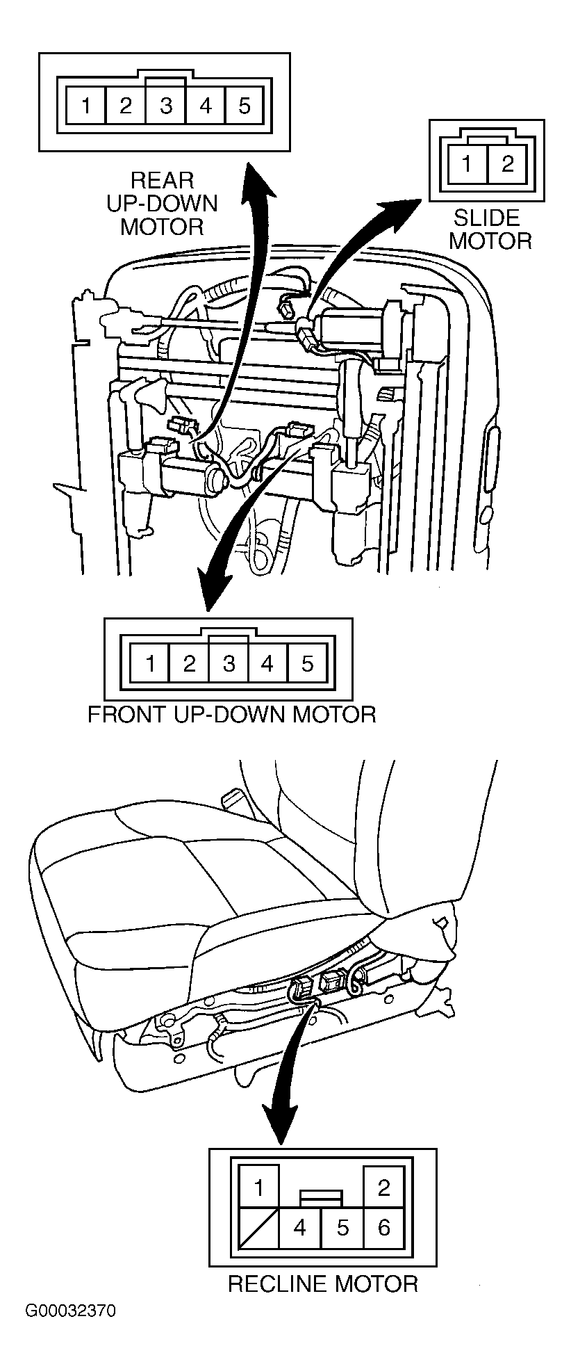 Fig 1: Identifying Driver's Power Seat Motor Connectors & Terminals