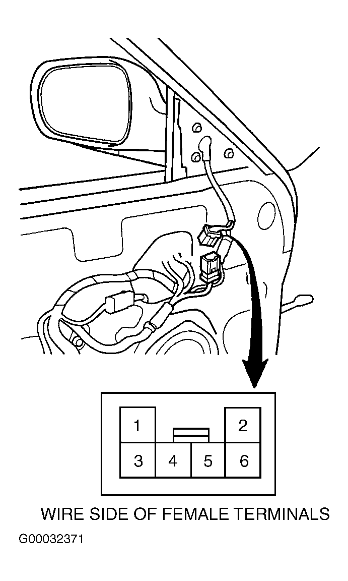 Remove appropriate door panel and disconnect power mirror motor connector. See Fig 1 . Using fused jumper wires, check motor operation by applying power and ground as specified. See POWER MIRROR MOTOR TEST table. If motor does not function as specified, replace appropriate motor assembly.
