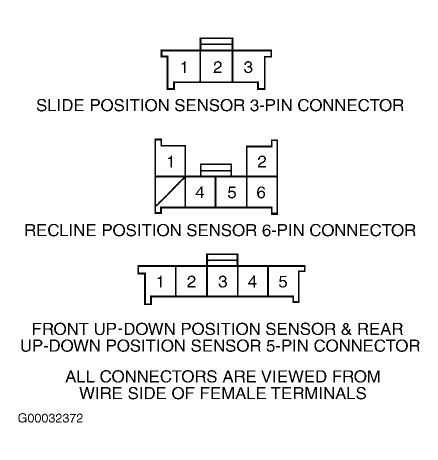 Fig 1: Identifying All Power Seat Position Sensor Connectors & Terminals